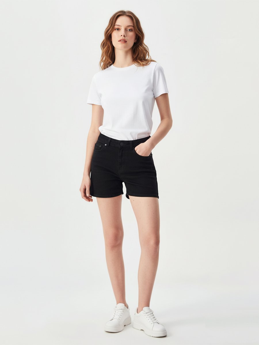 Larıss Hohe Taille Schwarz Jeans Shorts