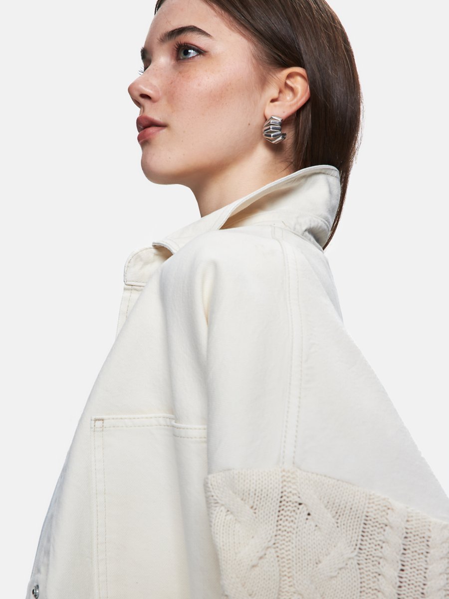Mellıe Örgü Kol Oversize Beyaz Jean Gömlek