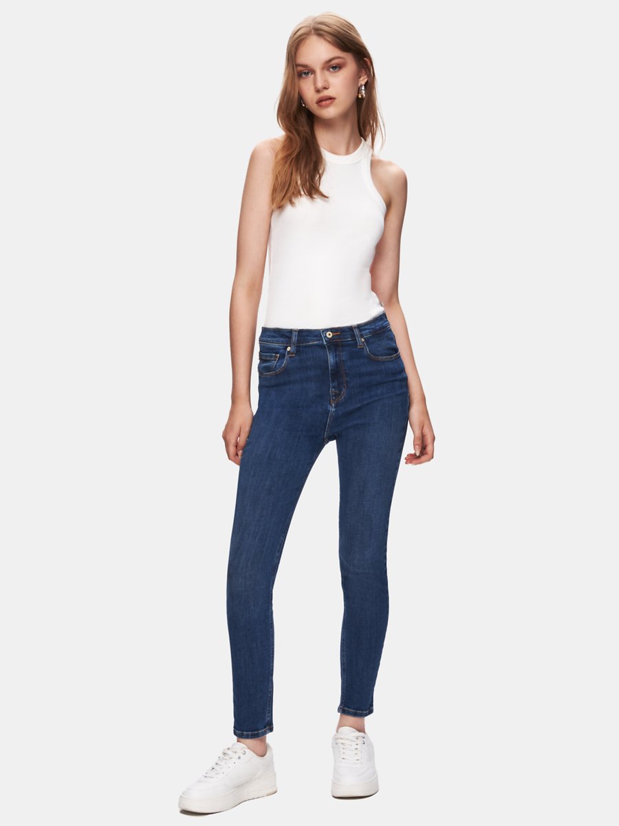 Tanya B Dar Paça Orta Bel Dark indigo Jean Pantolon