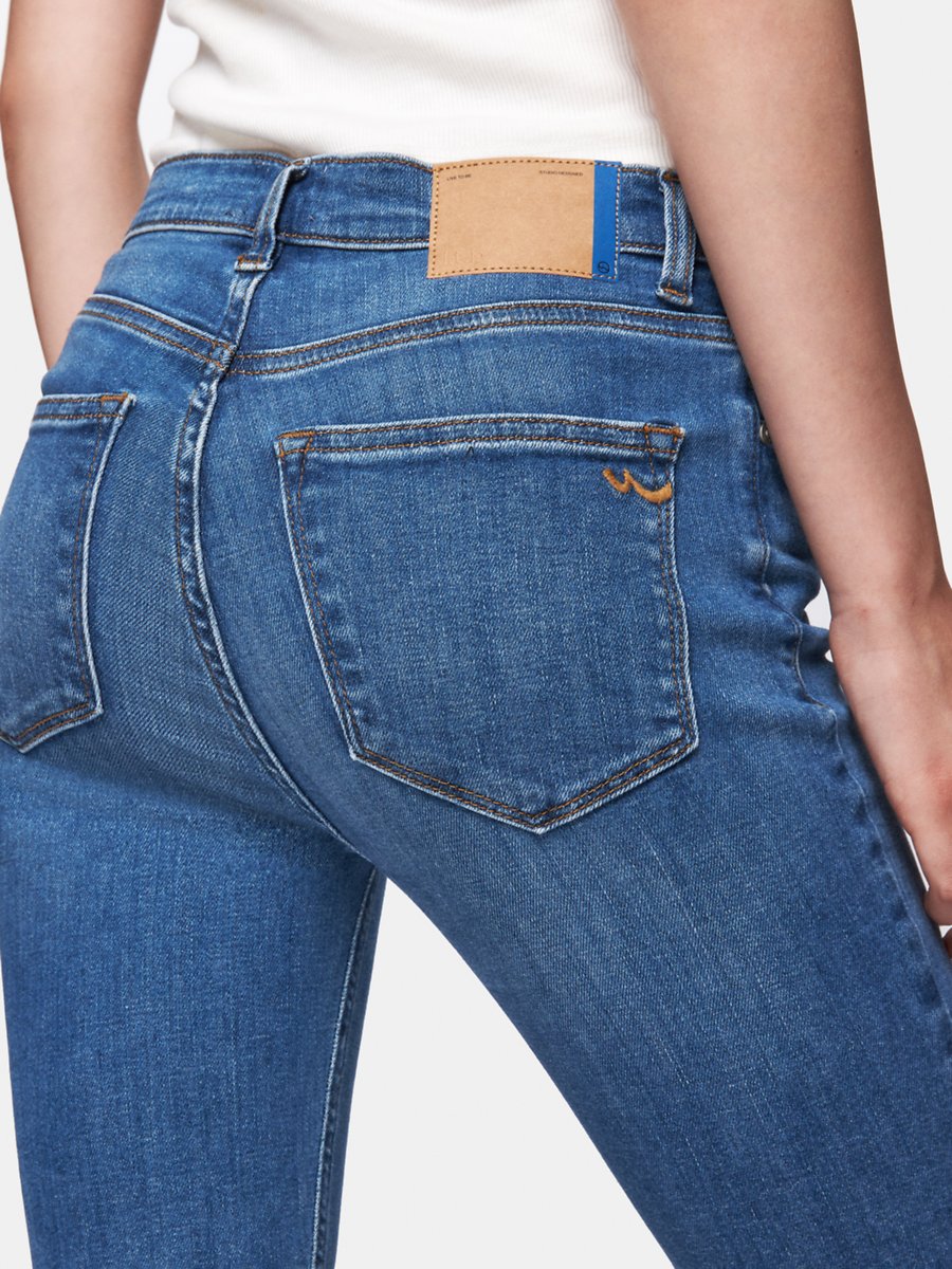 Tanya B Dar Paça Orta Bel Mid Indigo Jean Pantolon