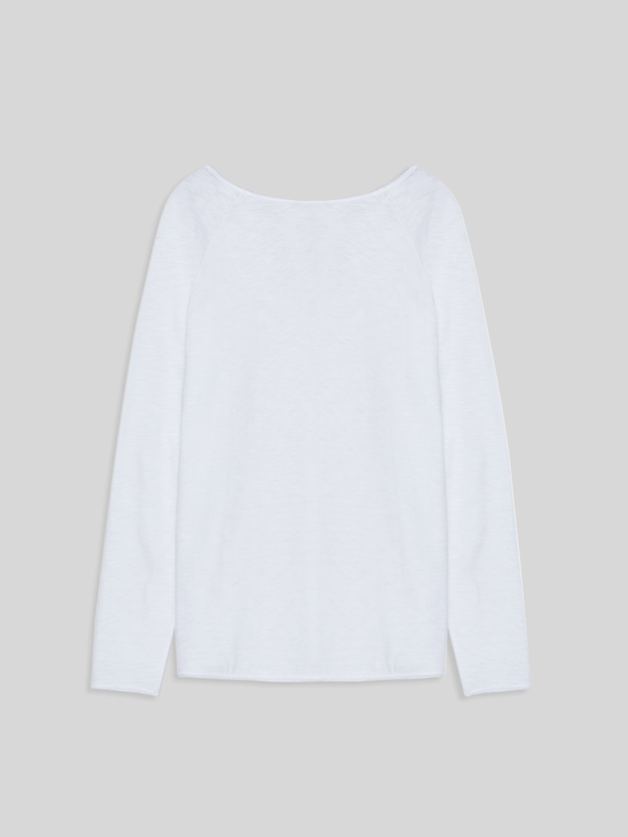 Uzun Kollu Bisiklet Yaka Basic Beyaz Sweatshırt
