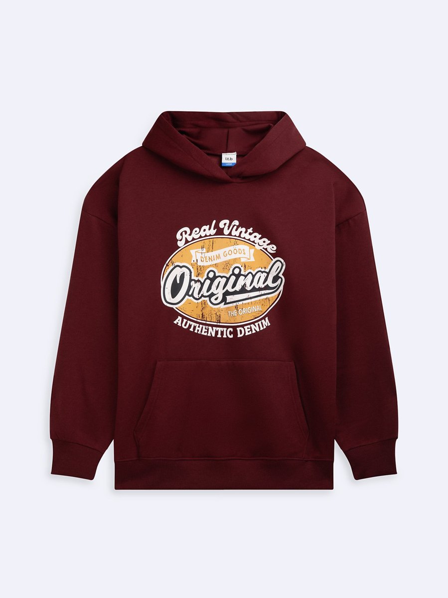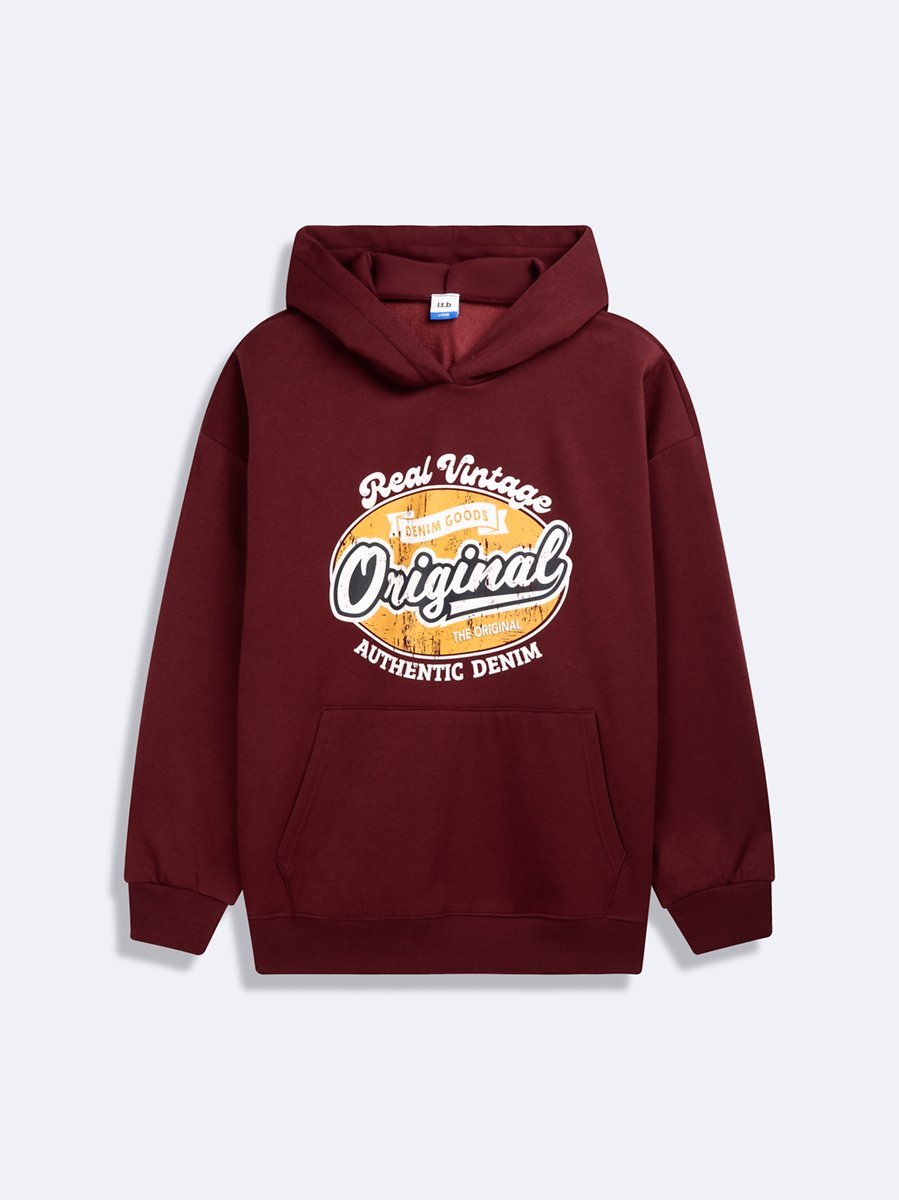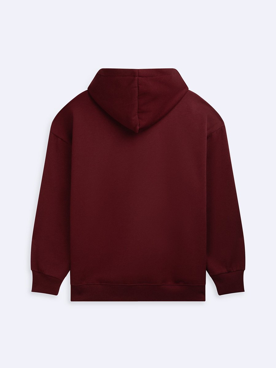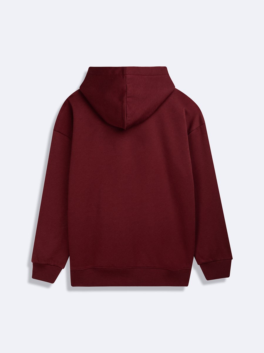 Uzun Kollu Kapüşonlu Slogan Baskılı Bordo Sweatshırt