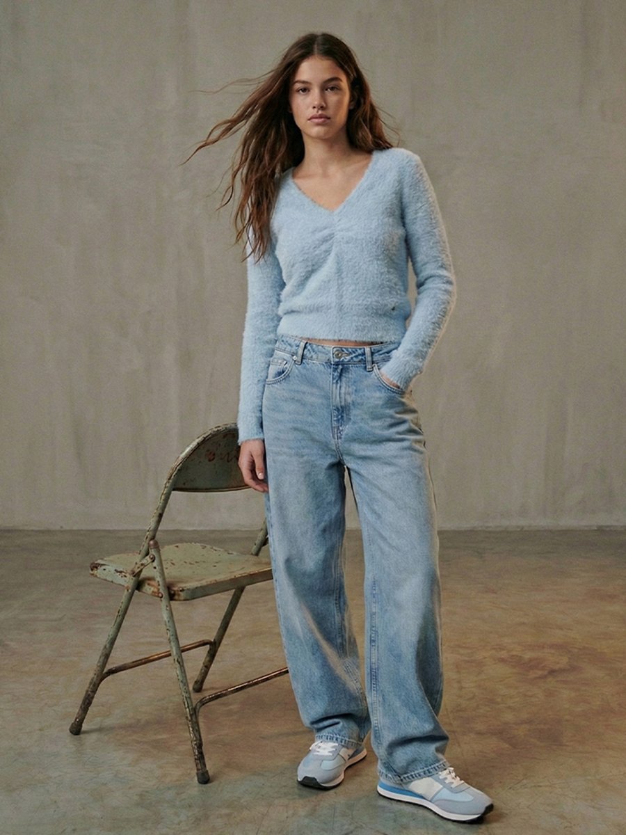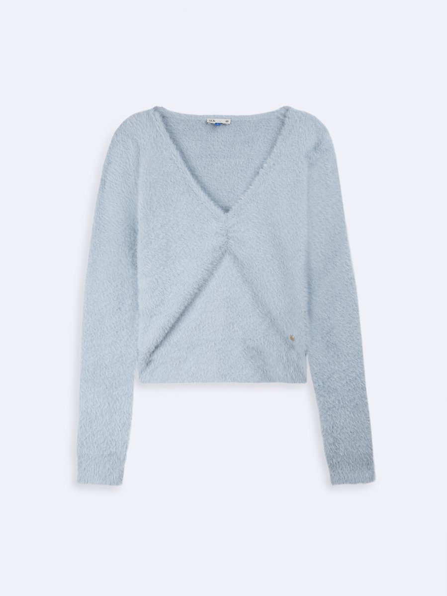 Uzun Kollu V Yaka Basic Mavi Kazak