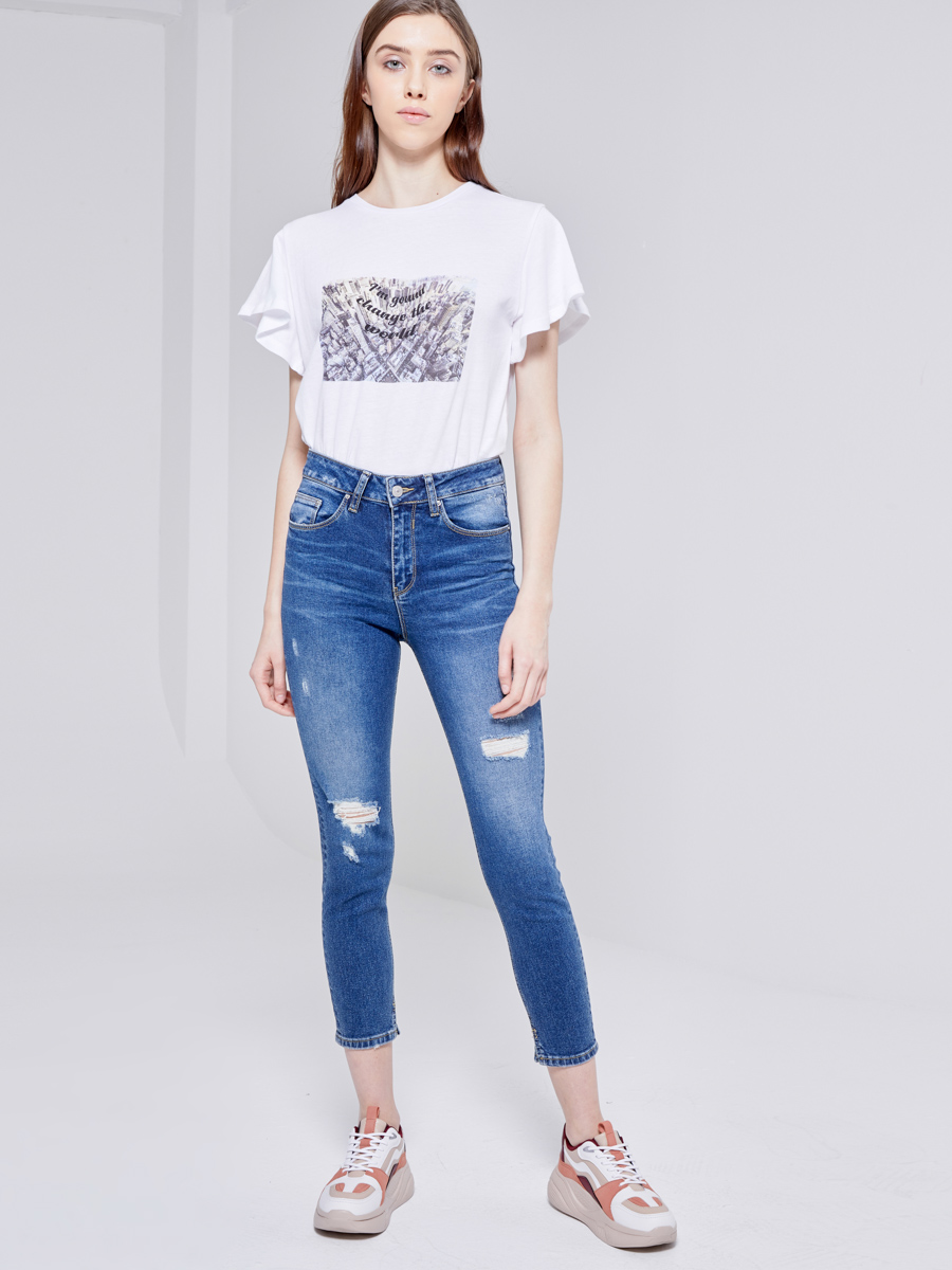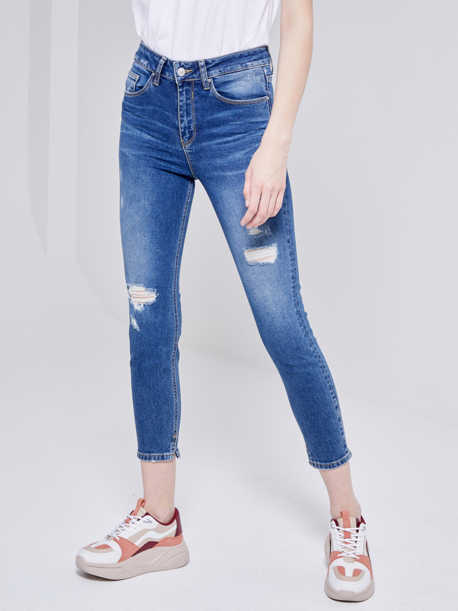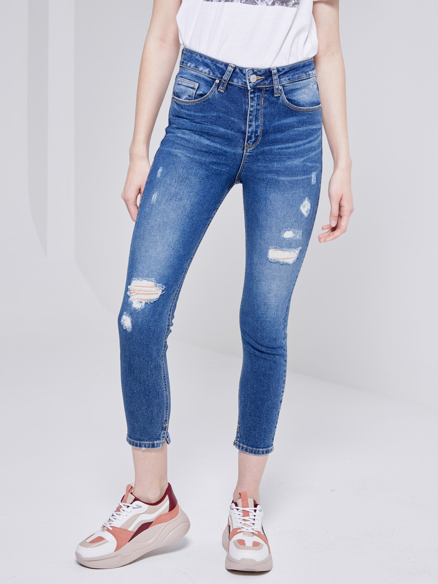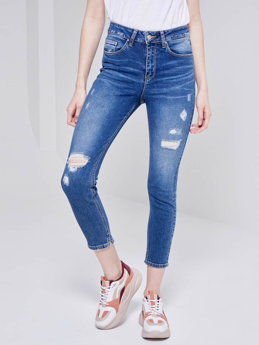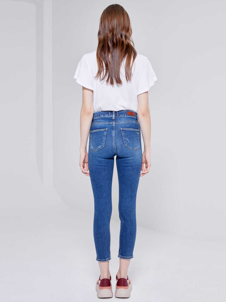 Bernıta Yüksek Bel Dar Paça Mid Indigo Jean Pantolon
