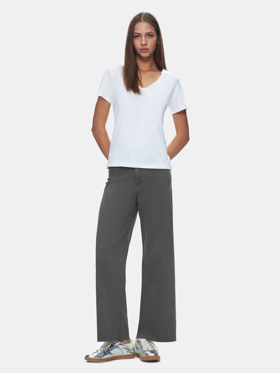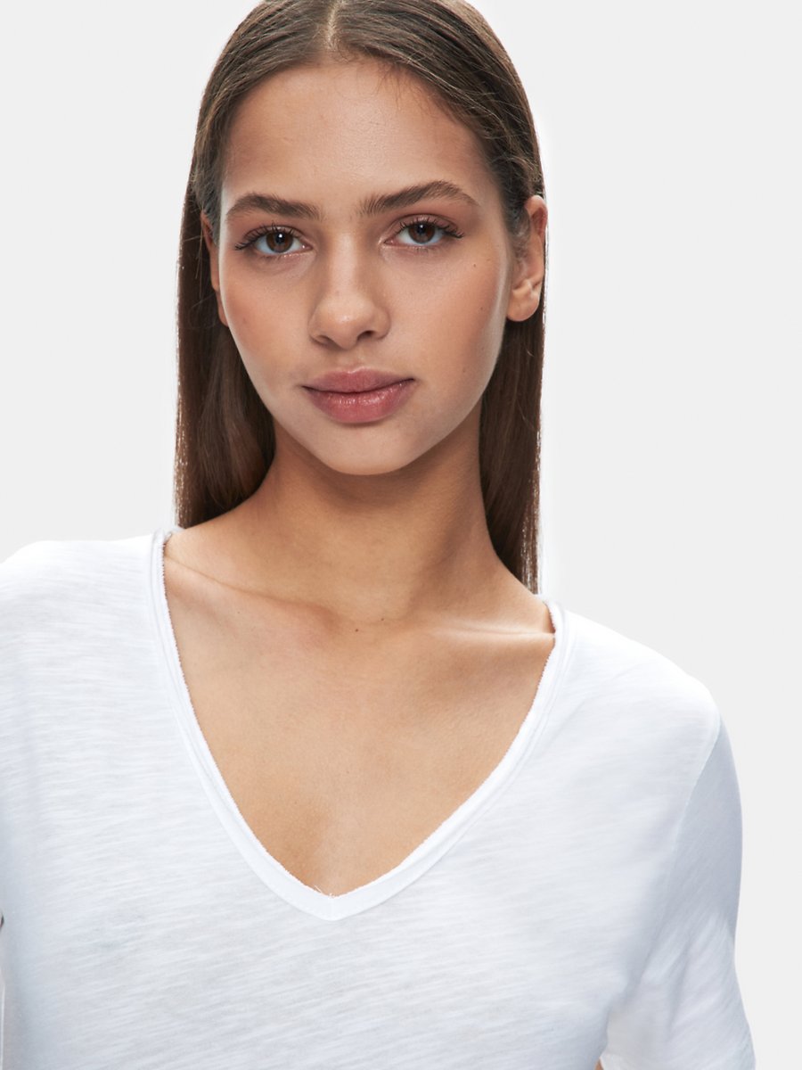 Kesik V Yaka Flamlı Krem T-shırt