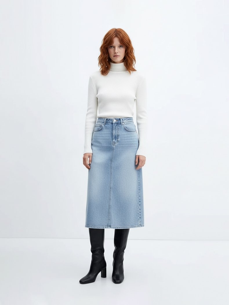 Danıca Skırt Midi Mid Indigo Jean Etek