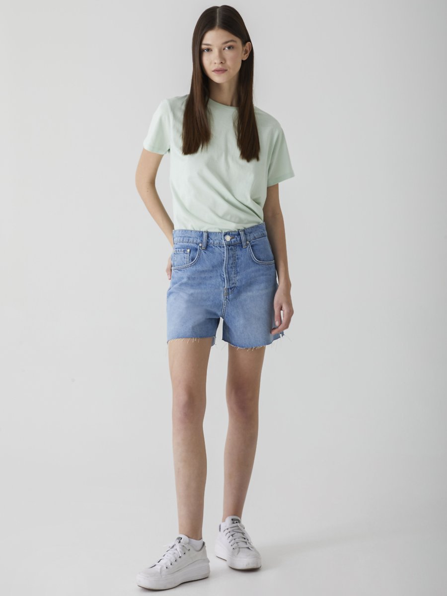 Deana Yüksek Bel Mid Indigo Jean Şort