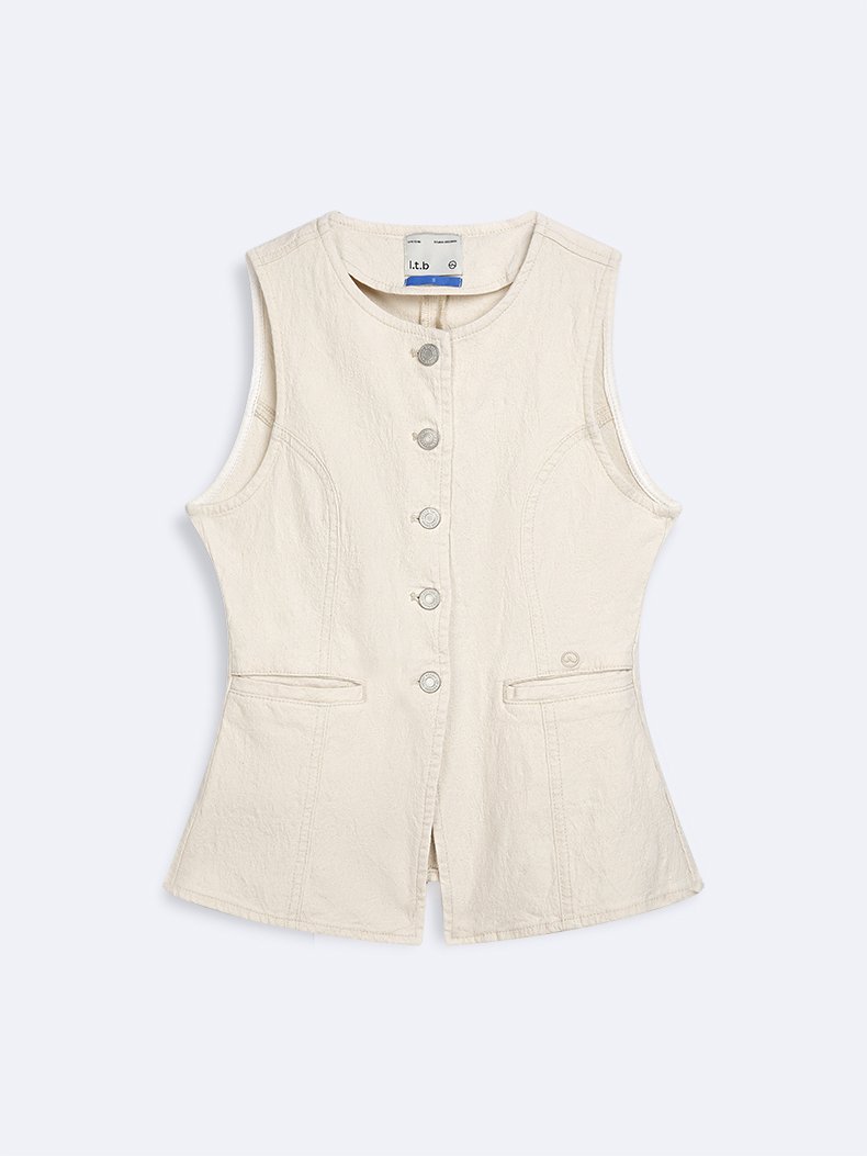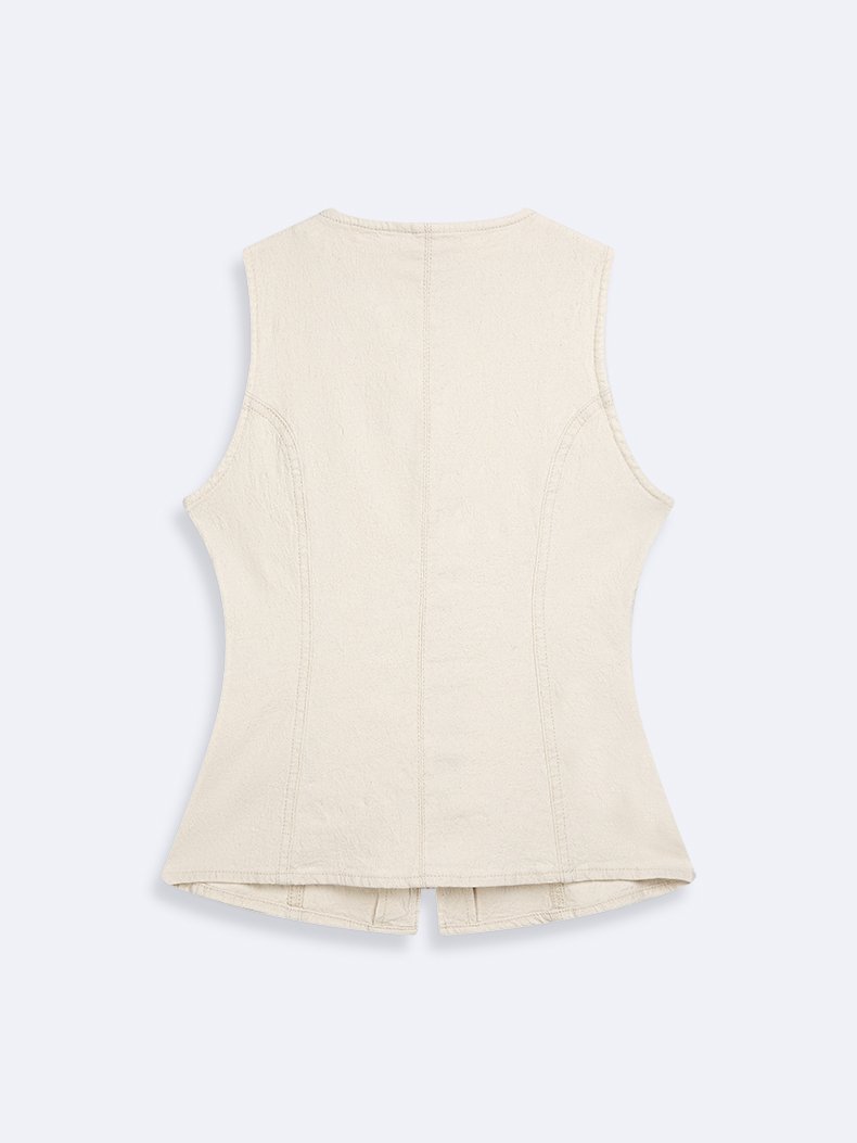Dıora Kolsuz Önü Düğmeli Mid Indigo Jean Yelek