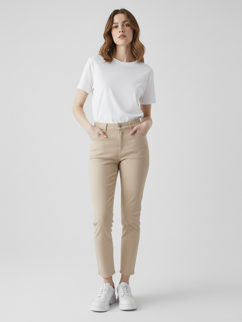 Dores Dar Paça Yüksek Bel Bej Jean Pantolon