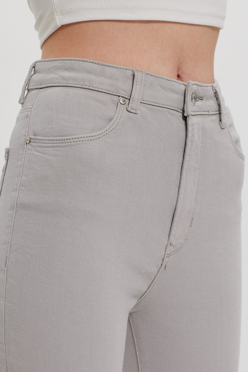Dores Dar Paça Yüksek Bel Gri Jean Pantolon