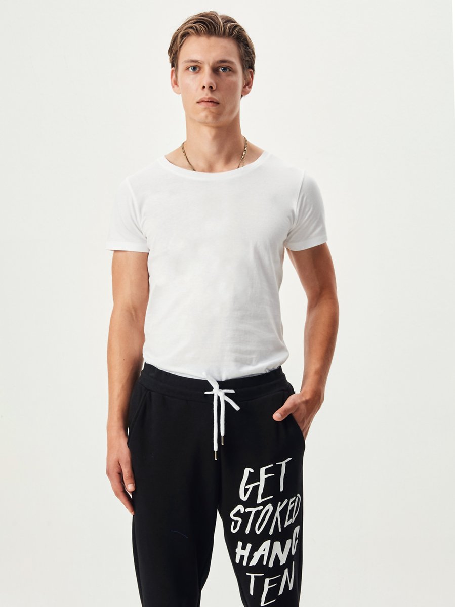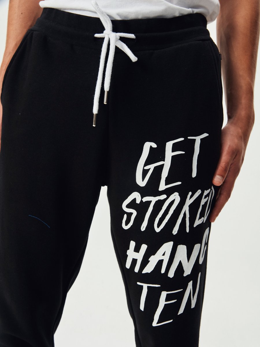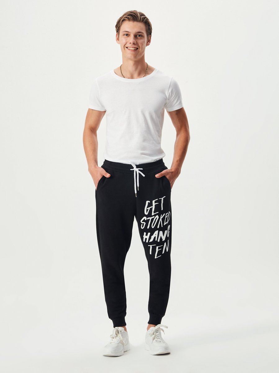 Beli Lastikli Slogan Baskılı Dar Paça Siyah Eşofman