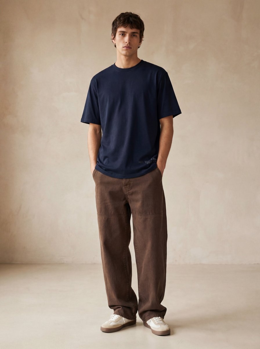 Etek Ucu Minimal Baskılı Lacivert T-shırt