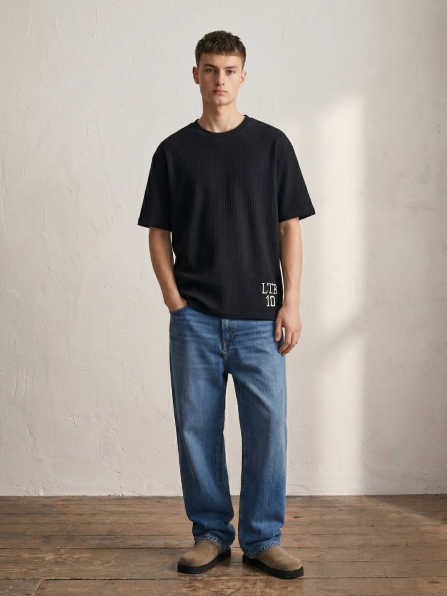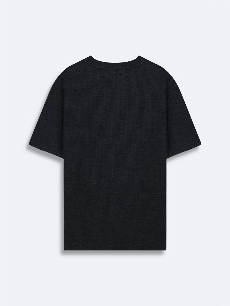 Etek Ucu Nakış Sloganlı Relaxed Lacivert T-shırt