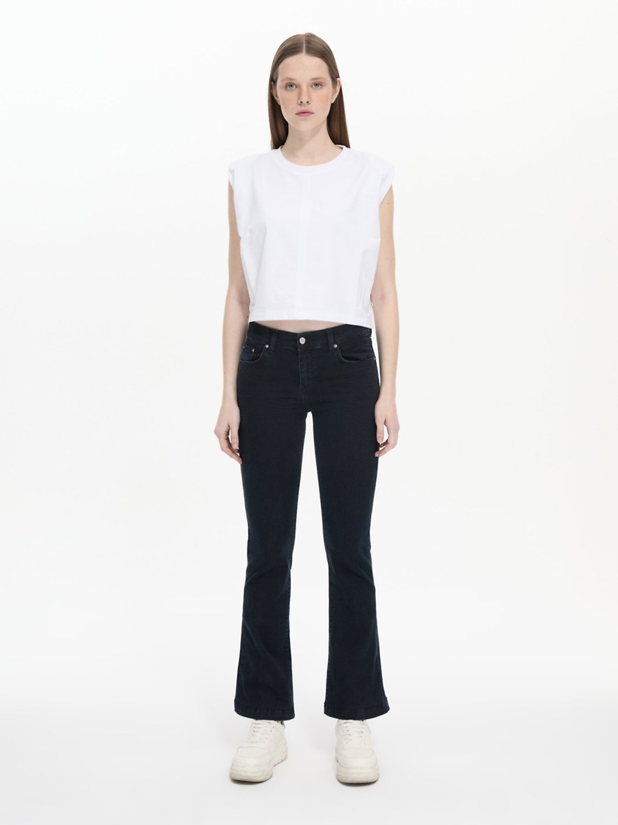 Fallon High Waist Flare Leg Mid Indigo Jean Trousers