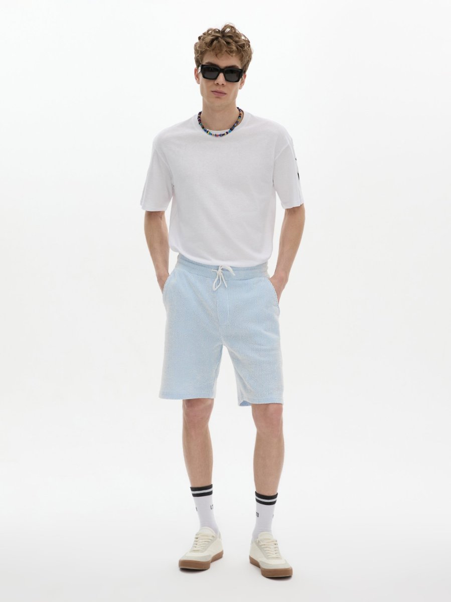 Jakarlı Örme Basic Mavi Şort