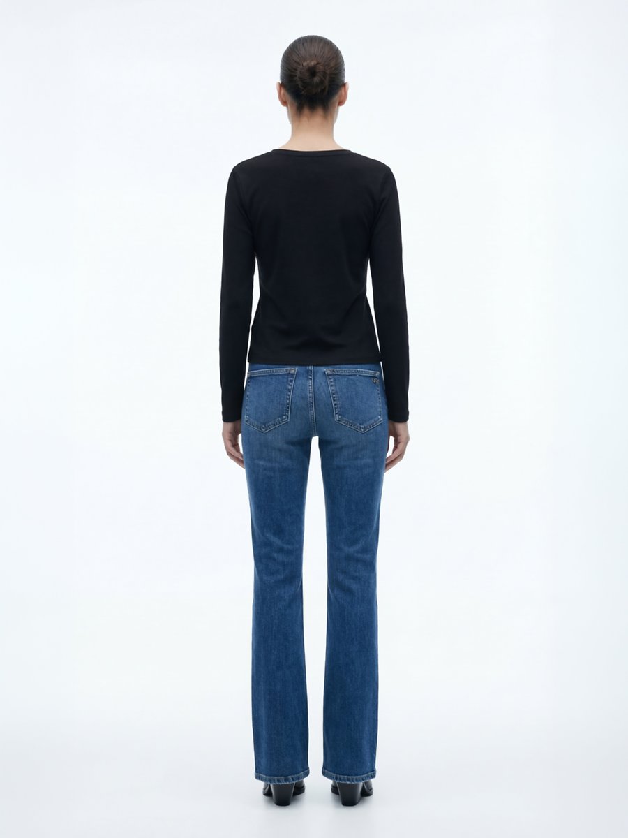 Julıana Yüksek Bel Boru Paça Mid Indigo Jean Pantolon