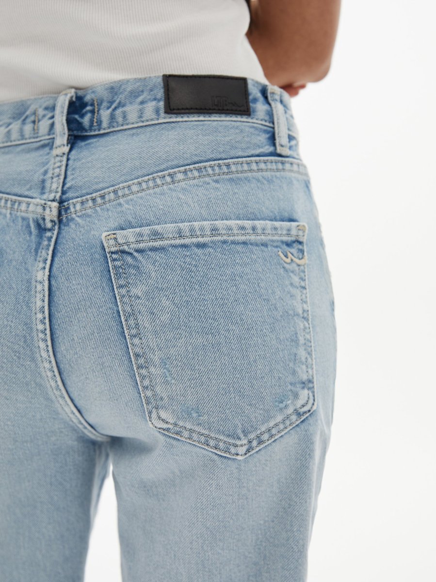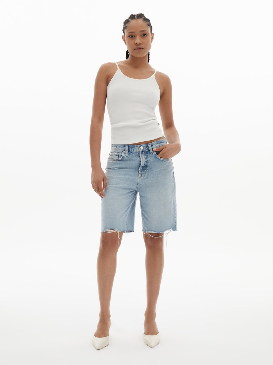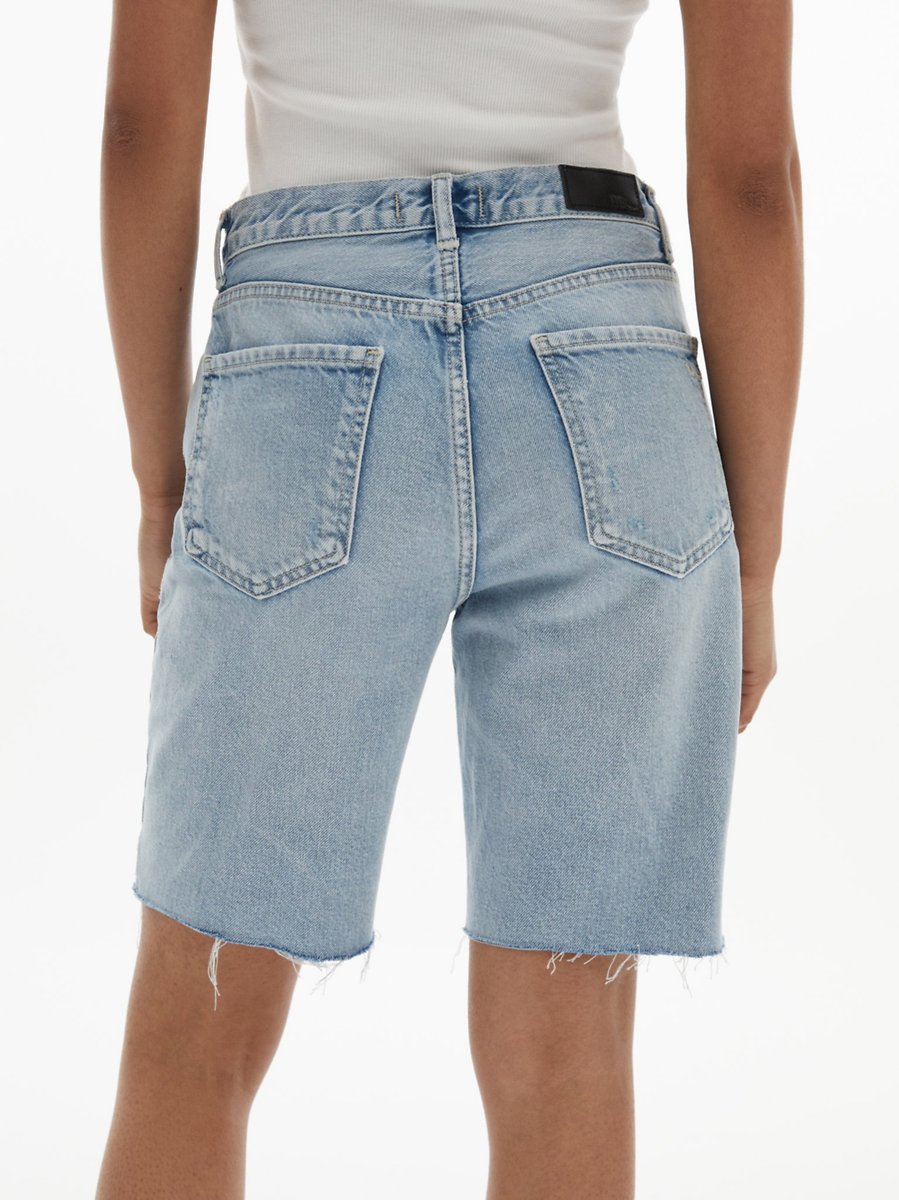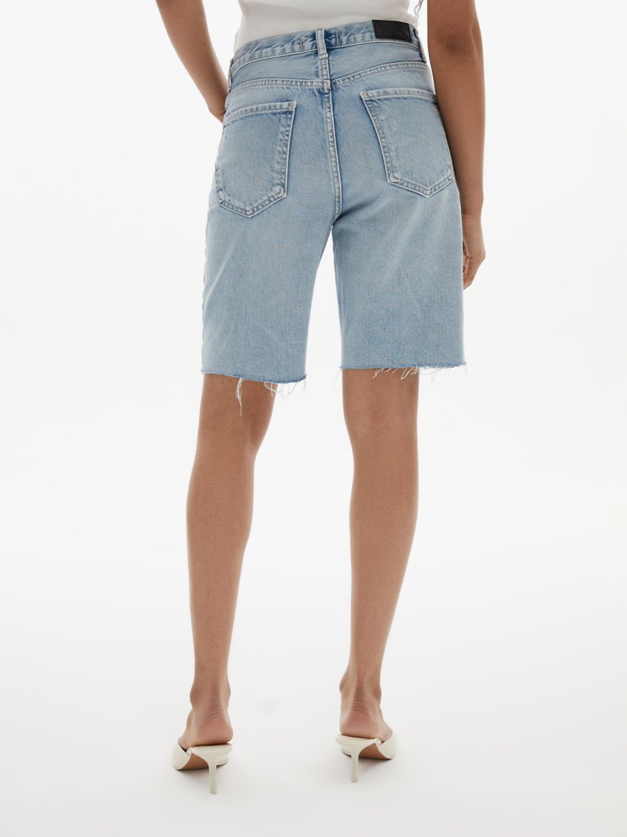 Juno Yüksek Bel Düz Kesim Mid Indigo Jean Bermuda
