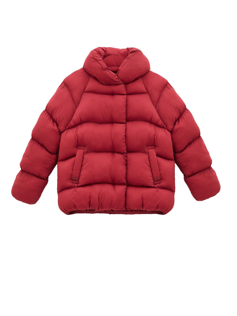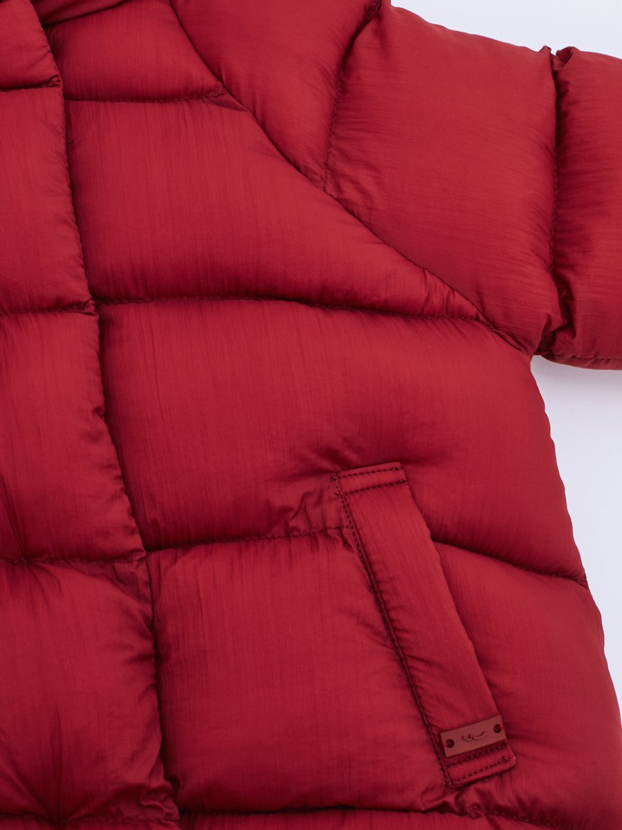 Uzun Kollu Şişme Kırmızı Mont