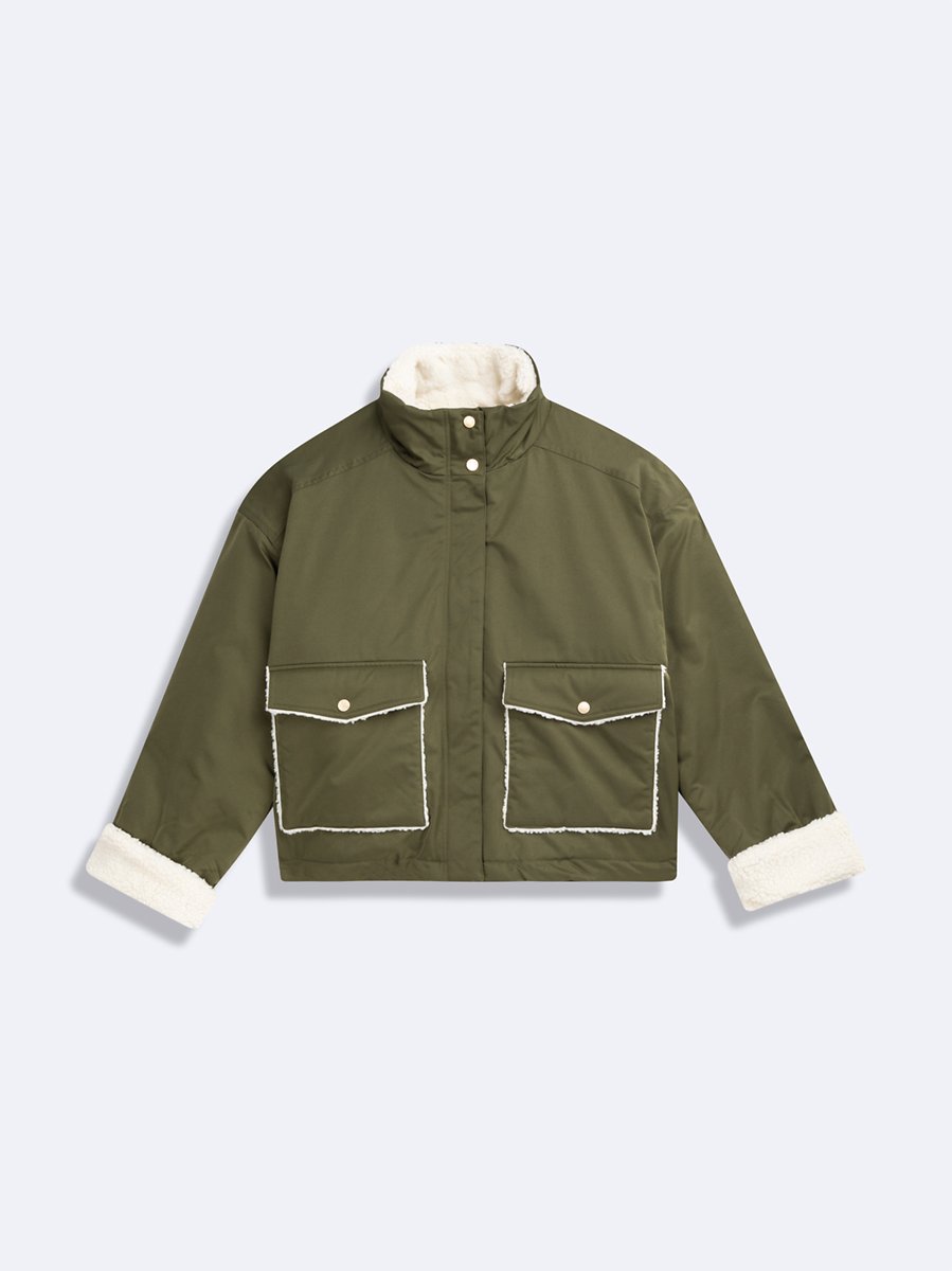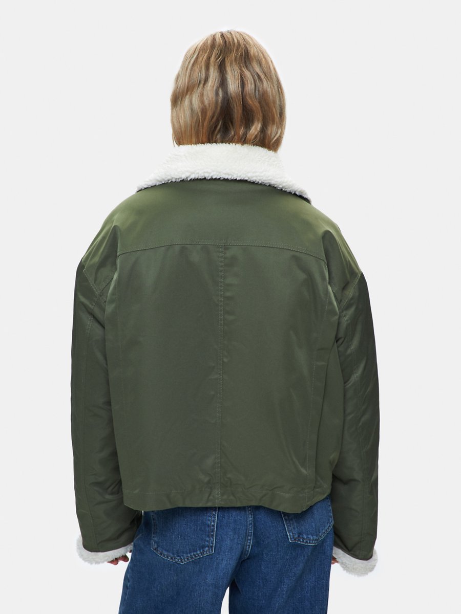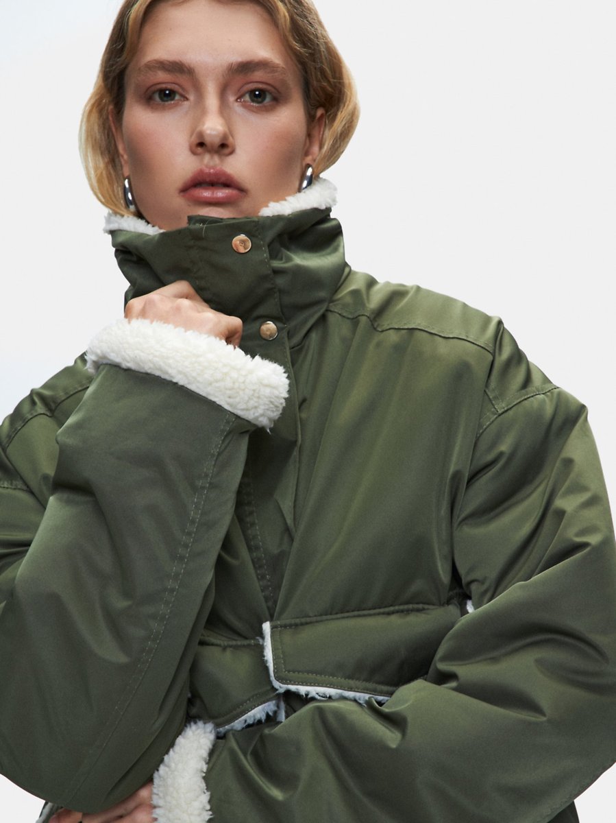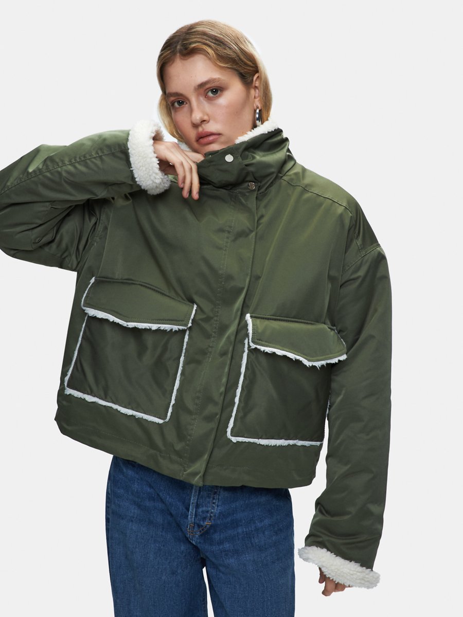 Kürk Detaylı Önü Cepli Yeşil Mont