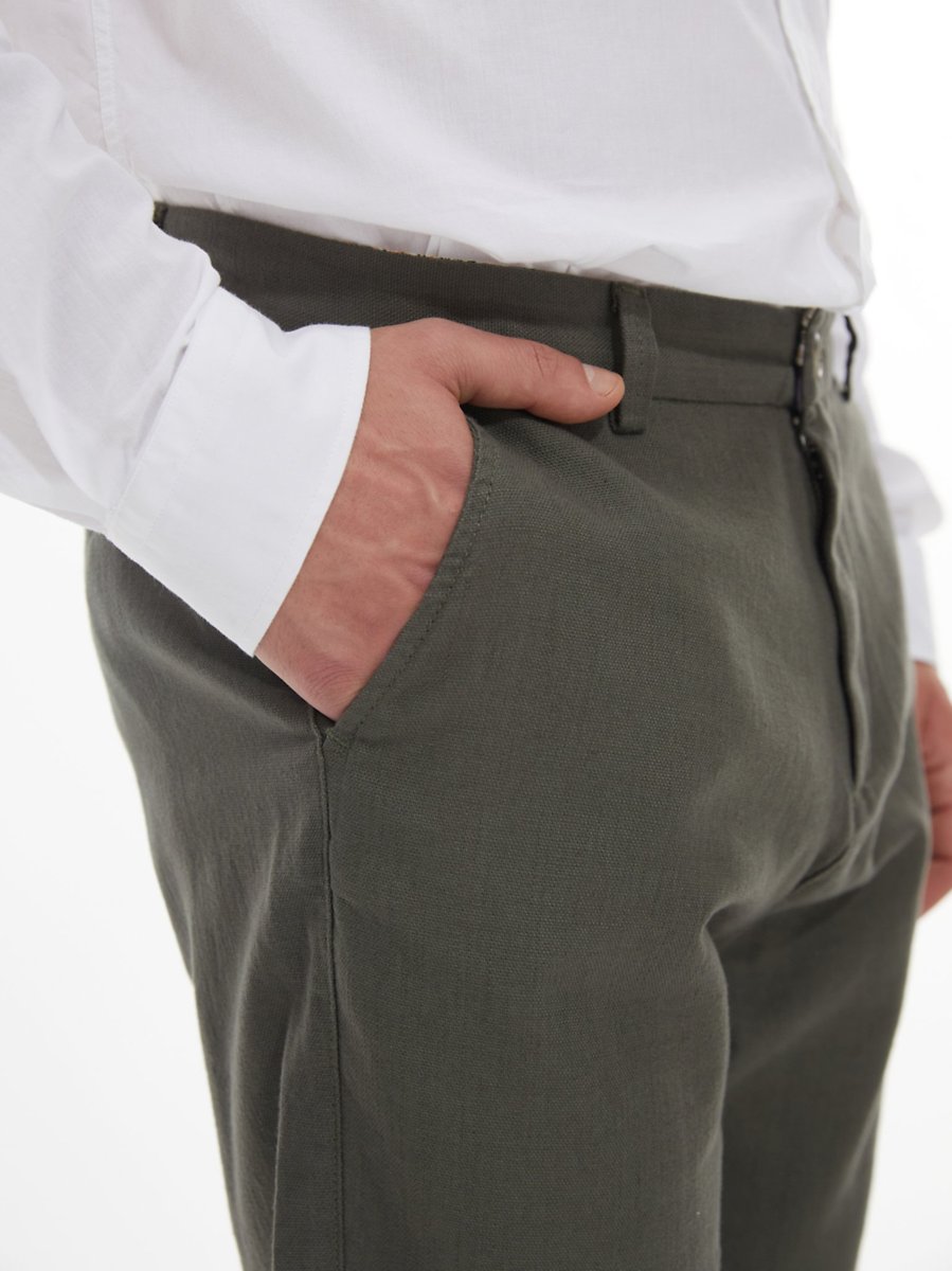 Keten Görünümlü Düz Paça Yeşil Pantolon