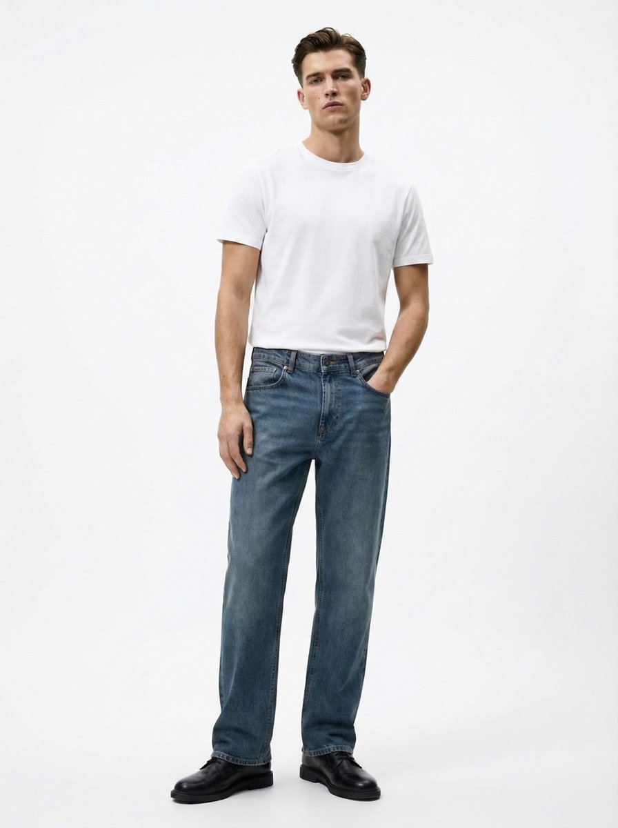 Lıoren Düz Paça Orta Bel Mavi Jean Pantolon