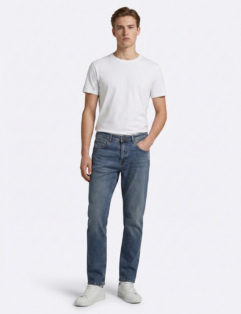 Lıoren Straight Leg Mid Waist Mid Indigo Jean Trousers