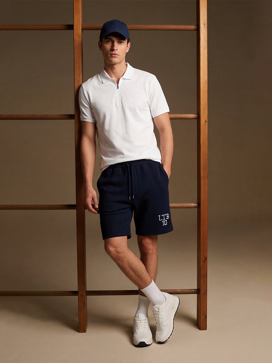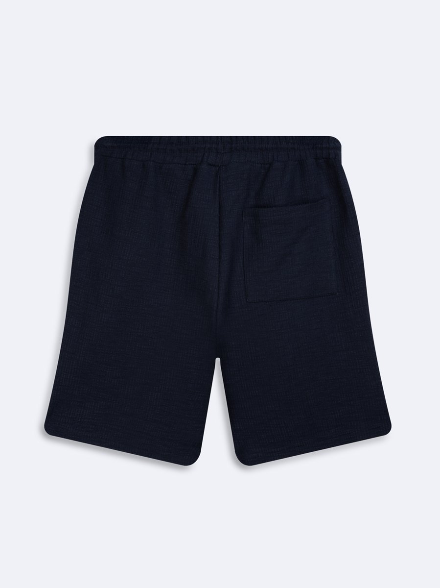Logo Baskılı Jakarlı Örme Lacivert Şort