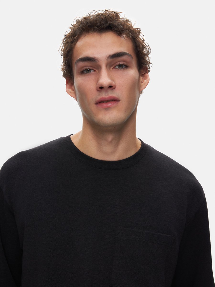 Uzun Kollu Önü Cepli Basic Siyah Sweatshırt