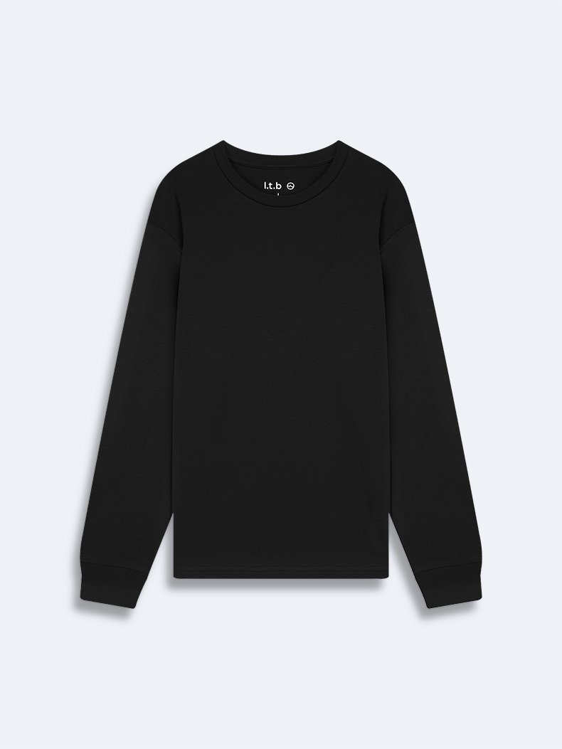 Uzun Kollu Bisiklet Yaka Basic Siyah Sweatshırt