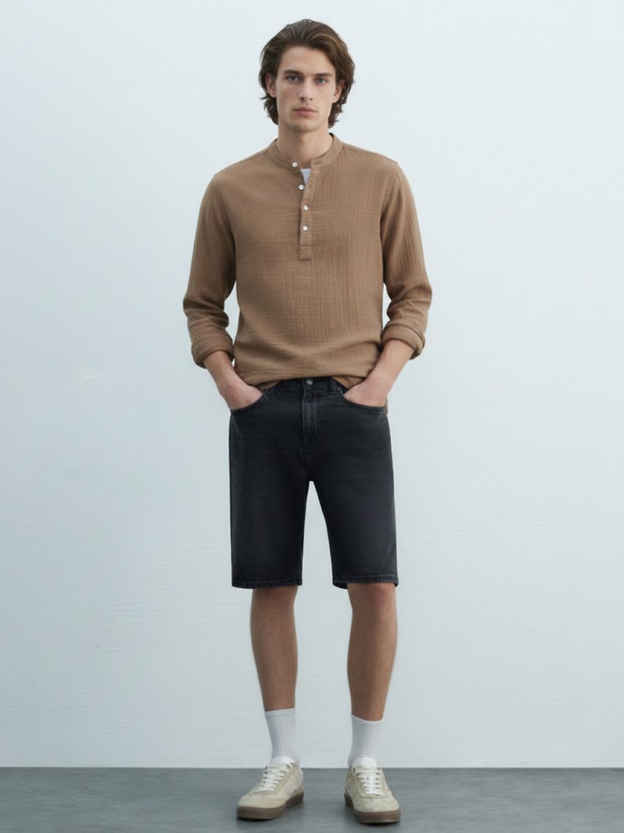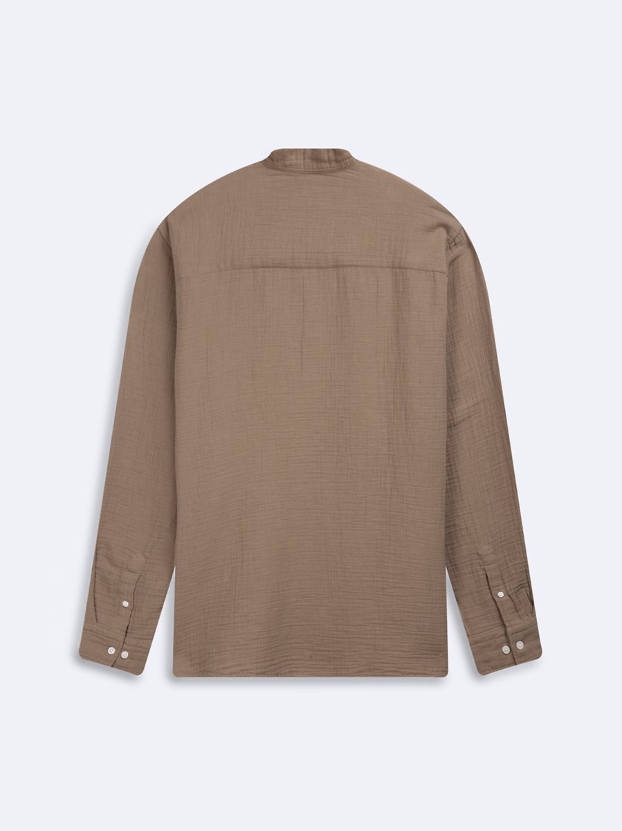 Uzun Kollu Önü Düğmeli Basic Kahverengi Gömlek