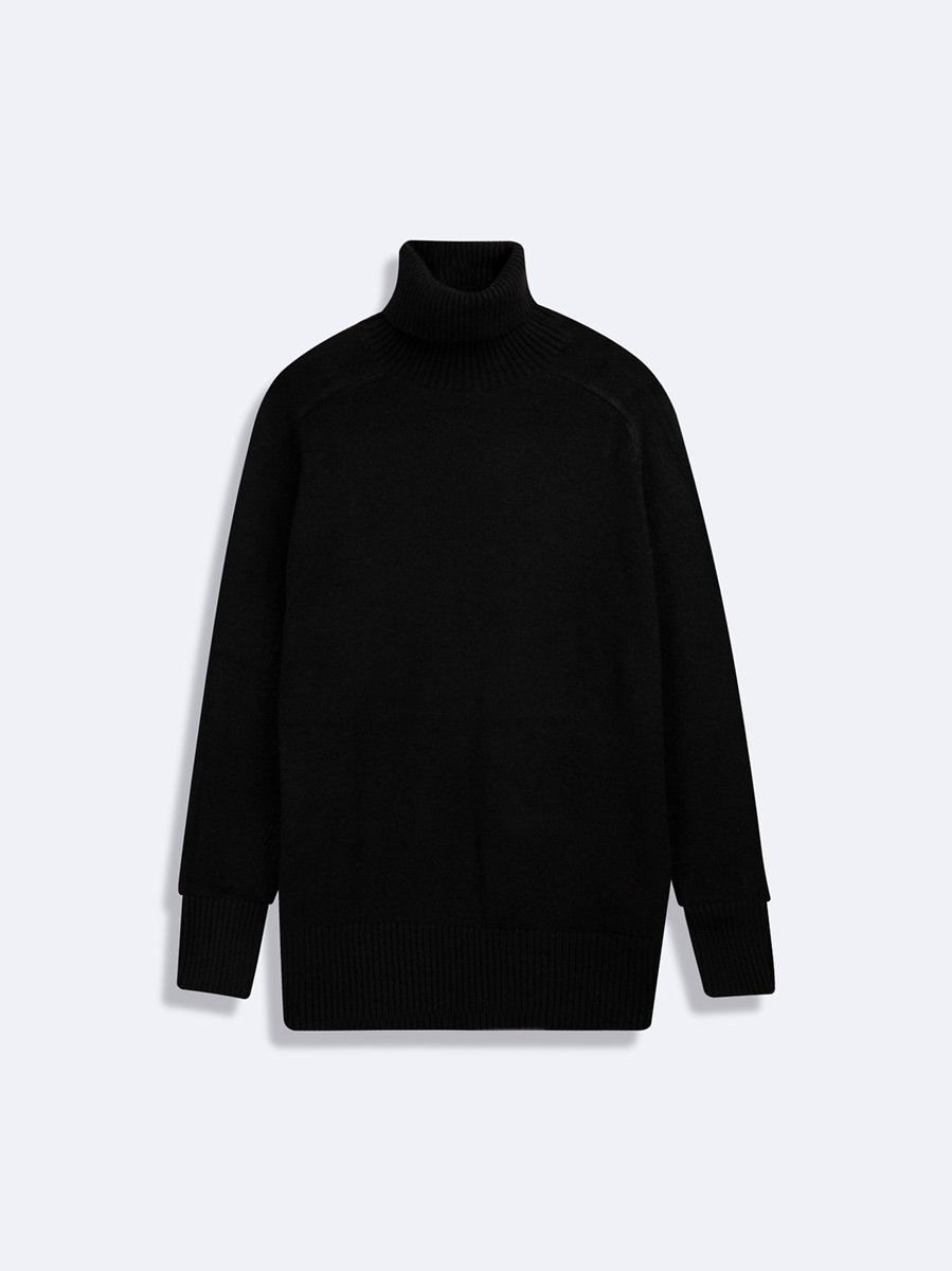 Uzun Kollu Balıkçı Yaka Triko Siyah Kazak