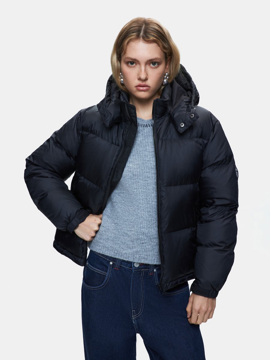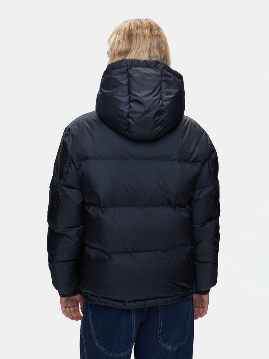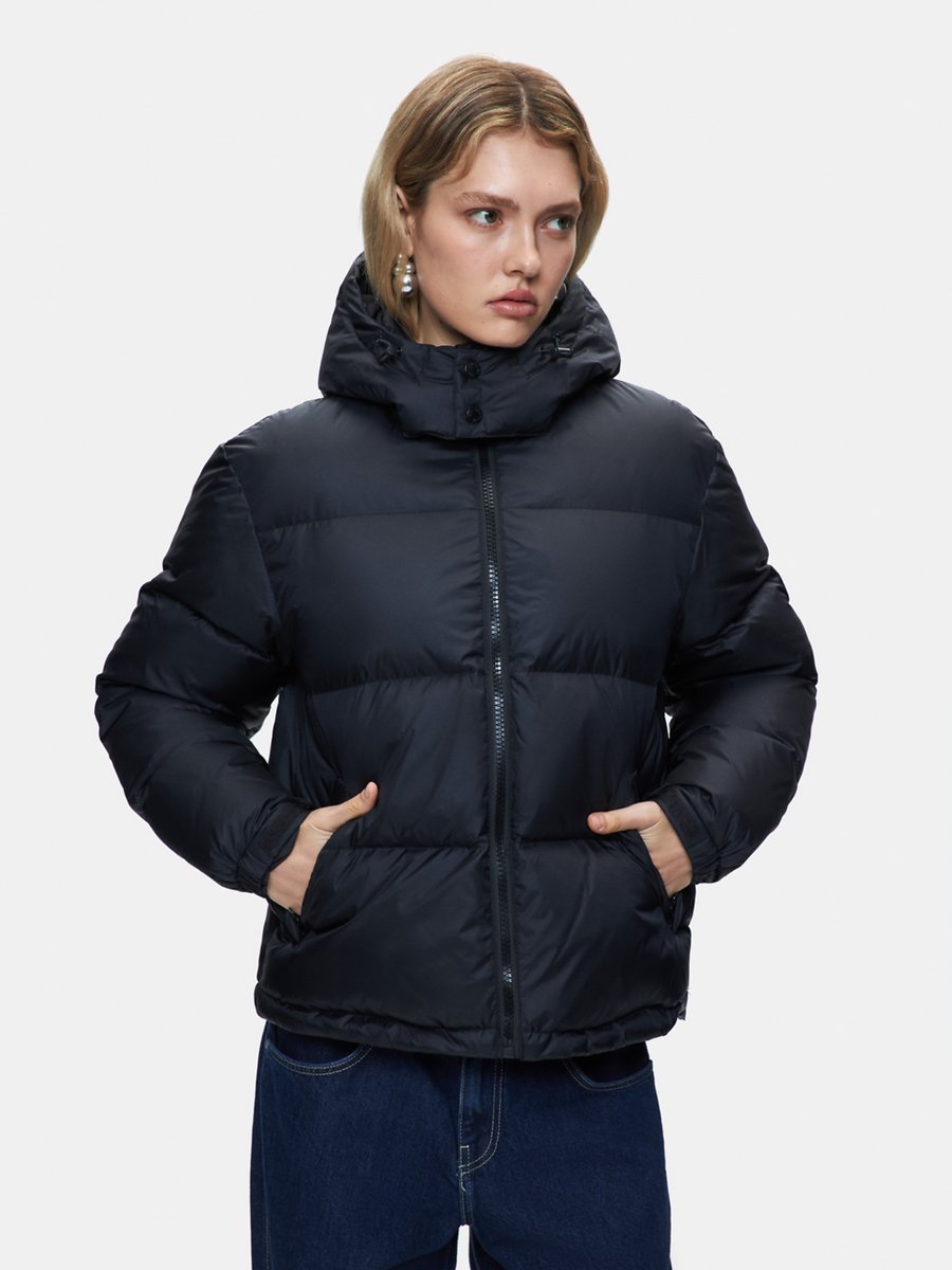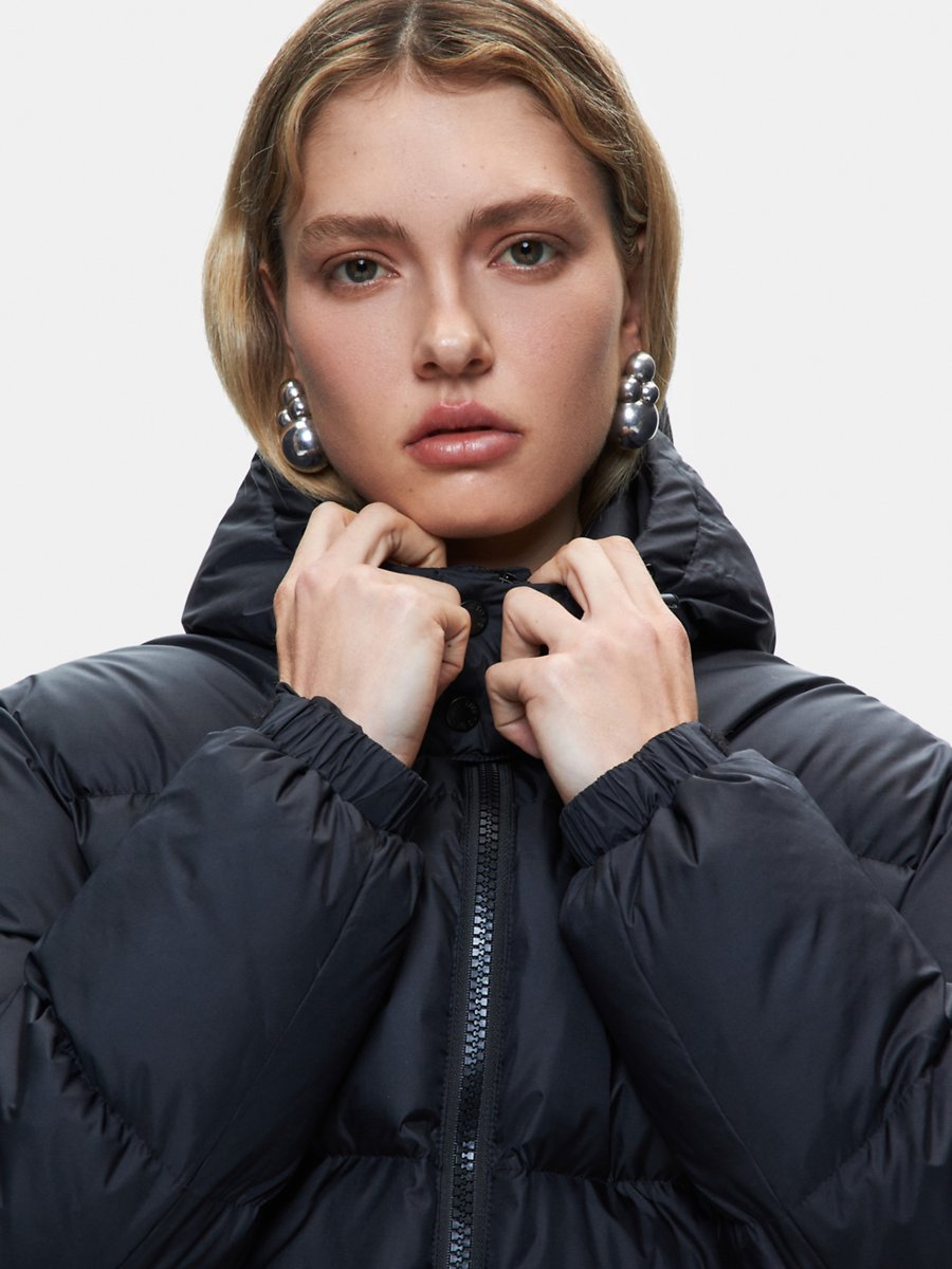 Uzun Kollu Kapüşonlu Şişme Siyah Mont