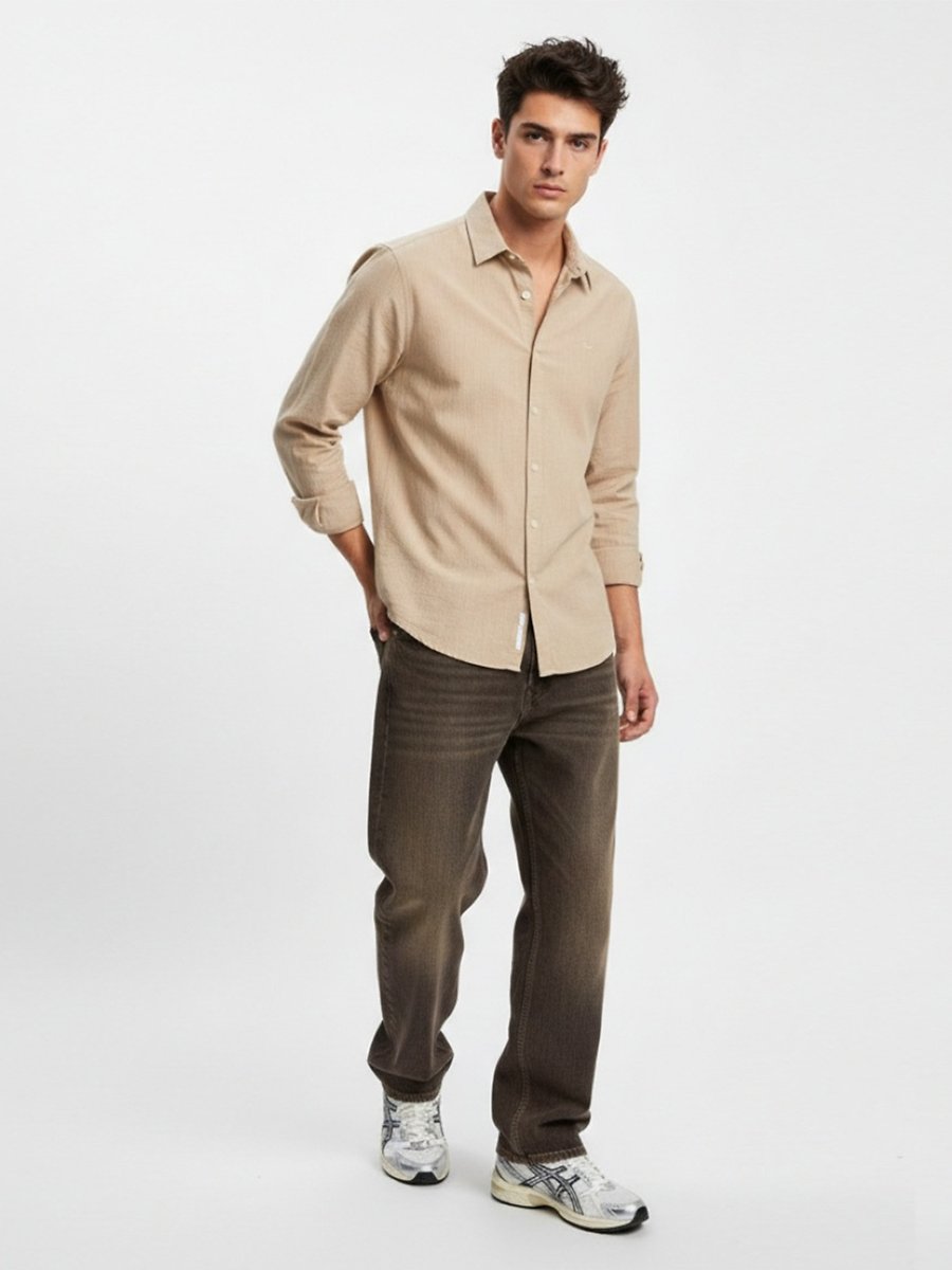 Uzun Kollu Regular Basic Bej Gömlek