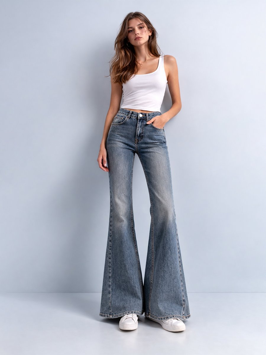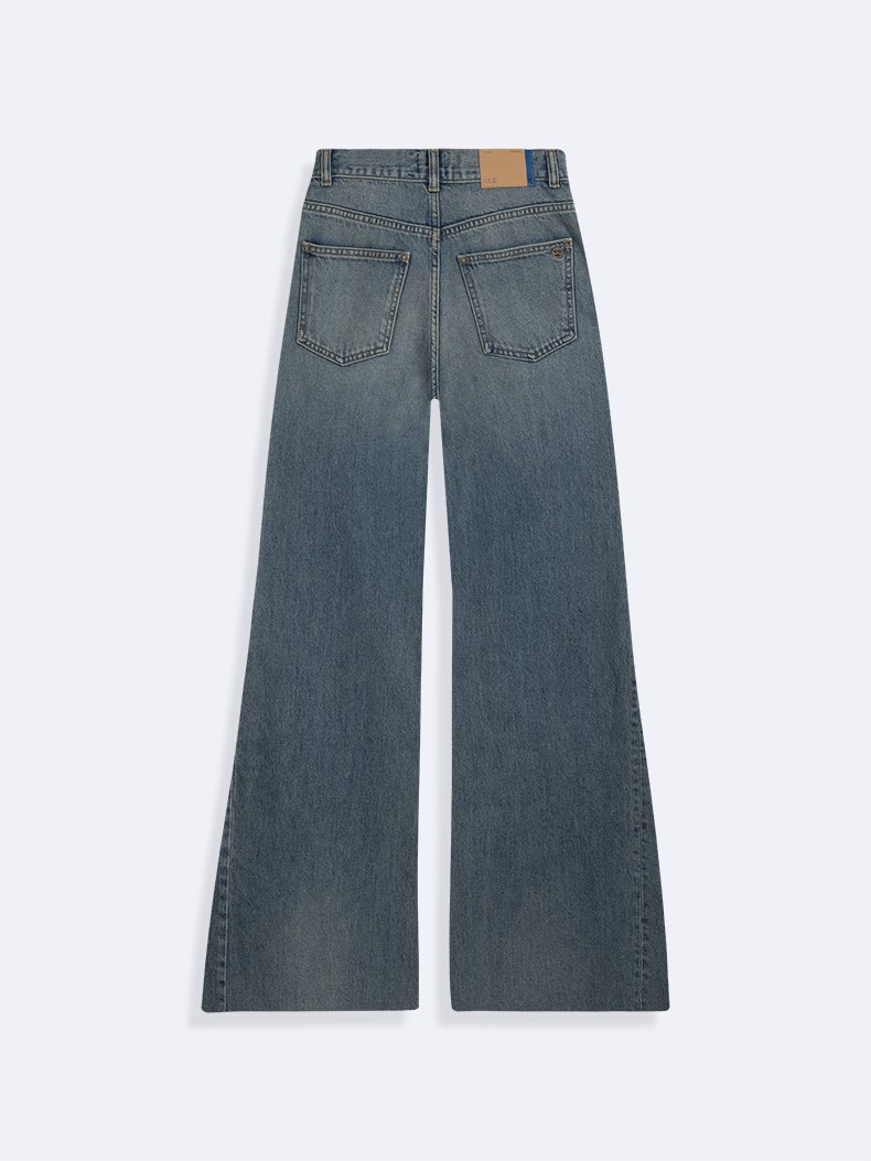 Louısa Yüksek Bel ispanyol Paça Mid Indigo Jean Pantolon