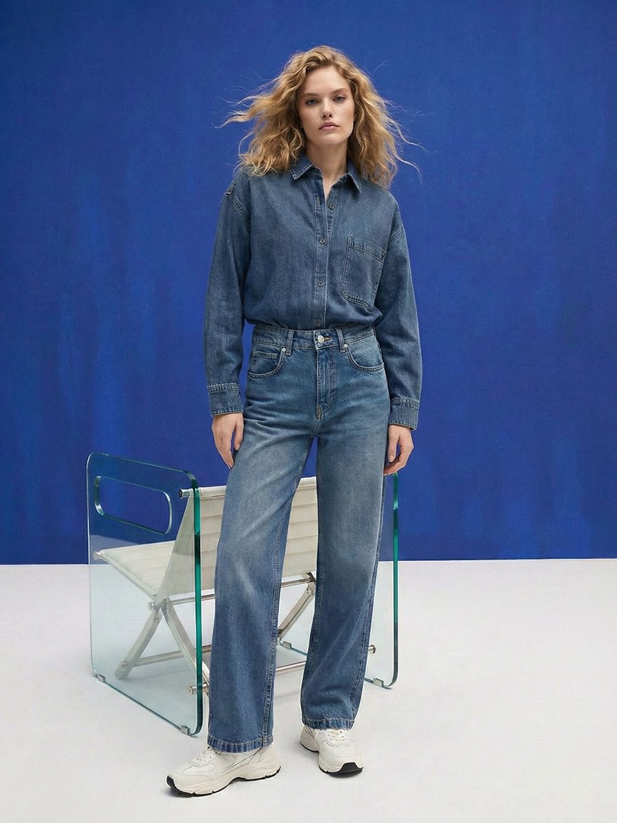 Naya Düz Paça Yüksek Bel Mid Indigo Jean Pantolon