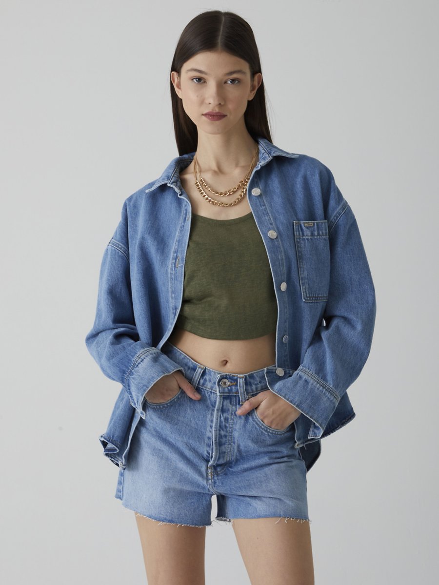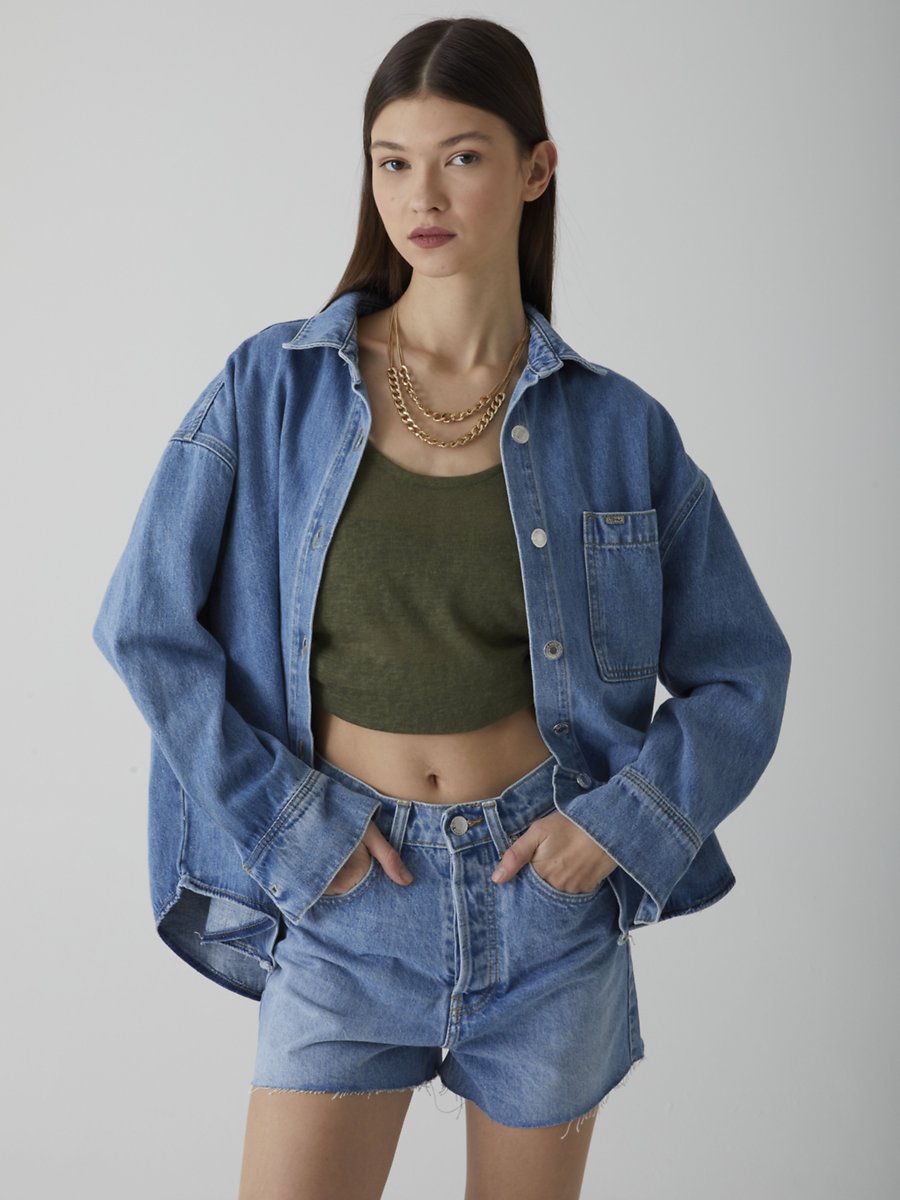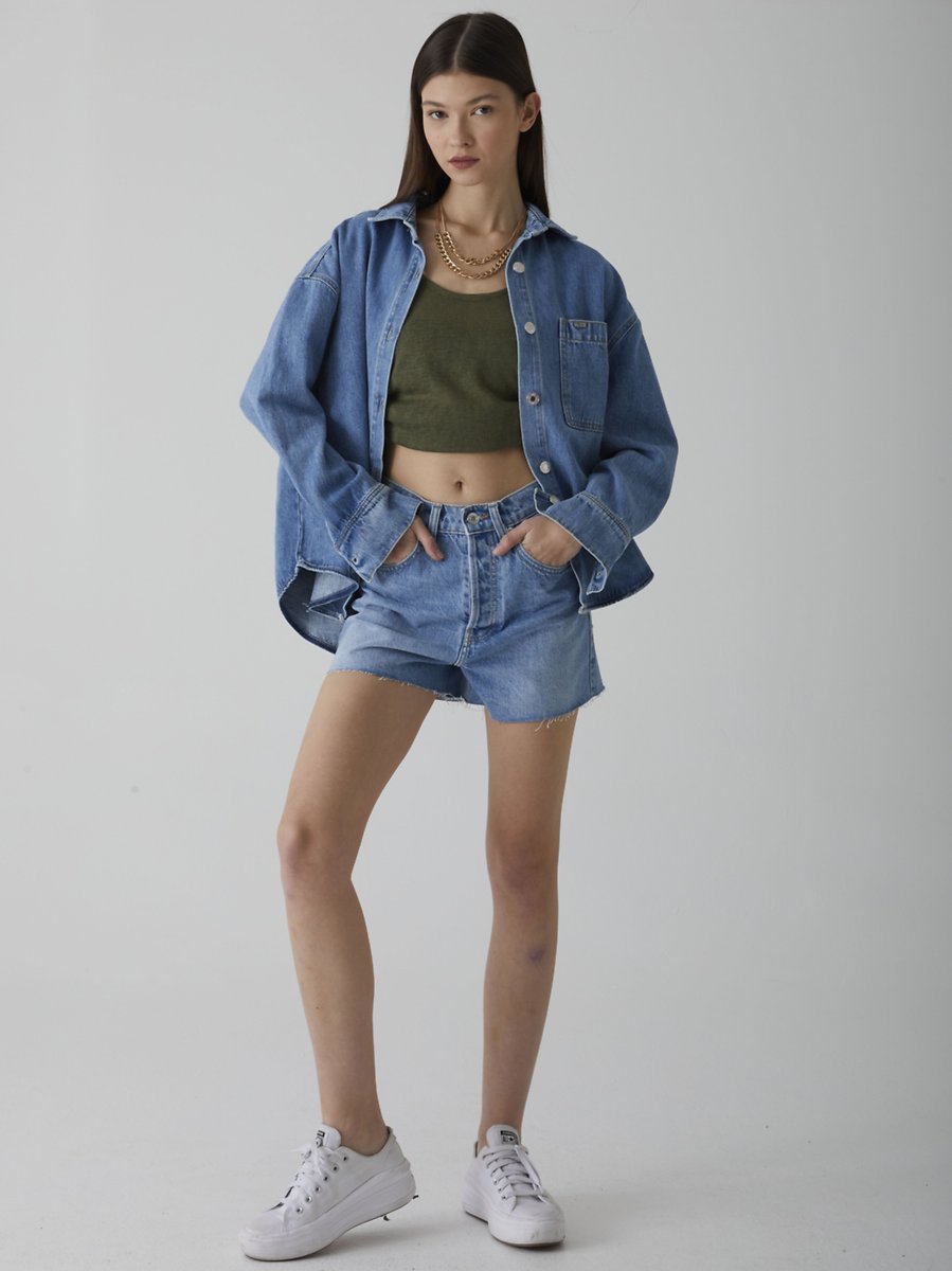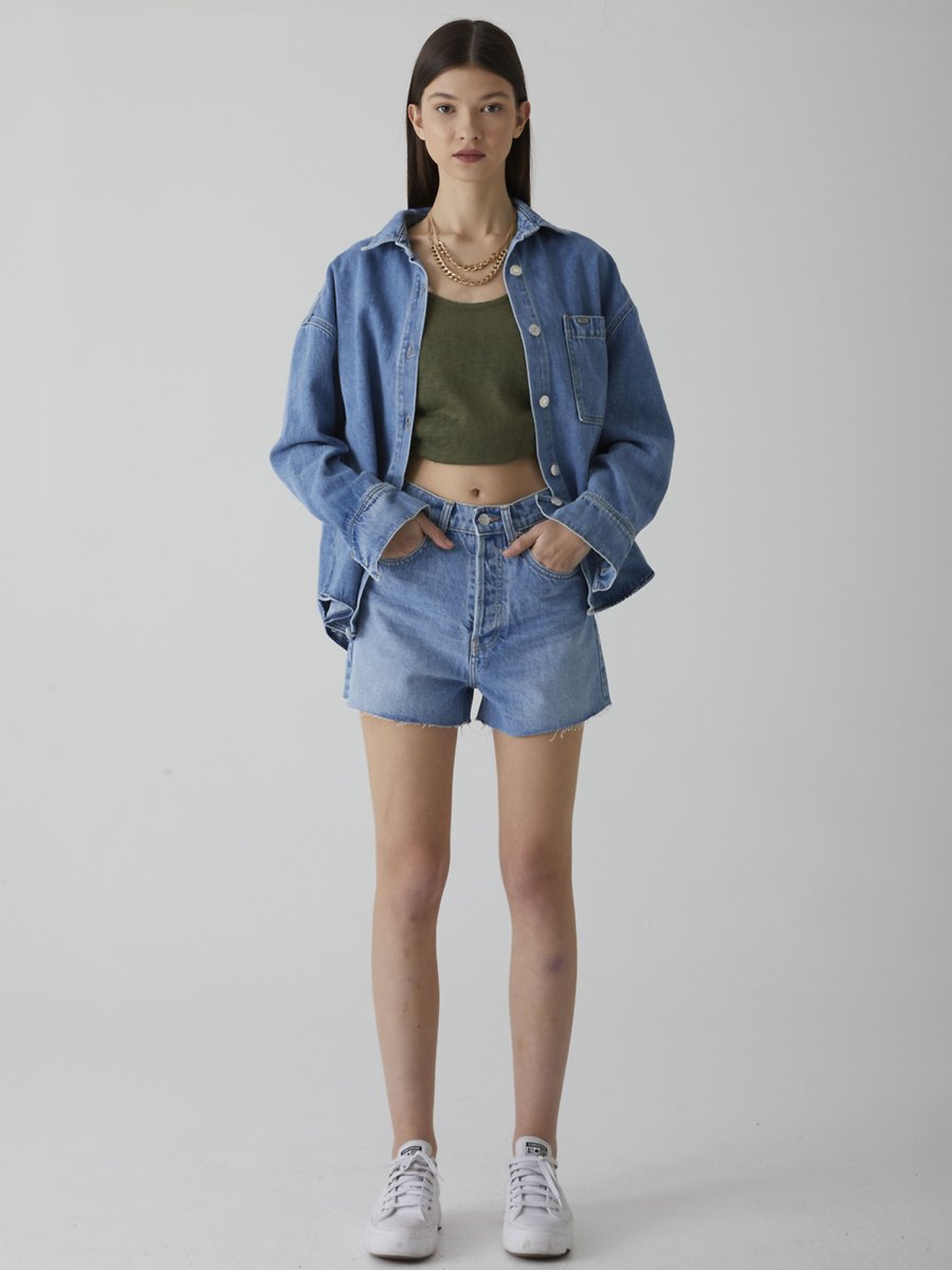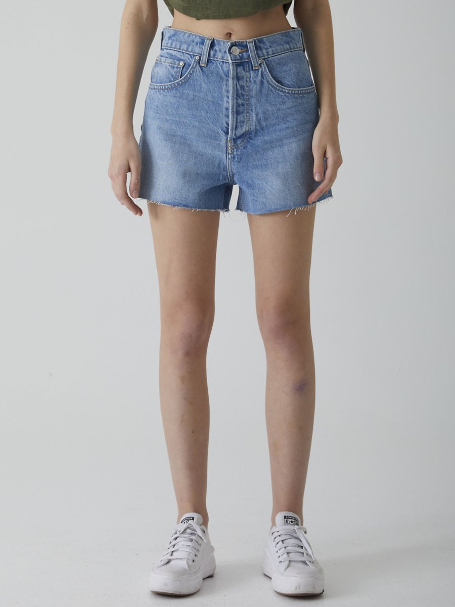 Ları Yüksek Bel Orta Mavi Jean Şort