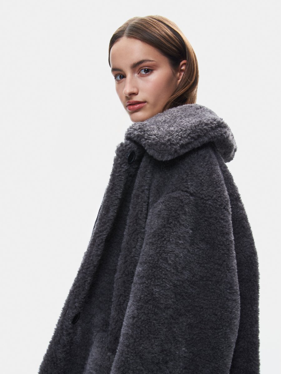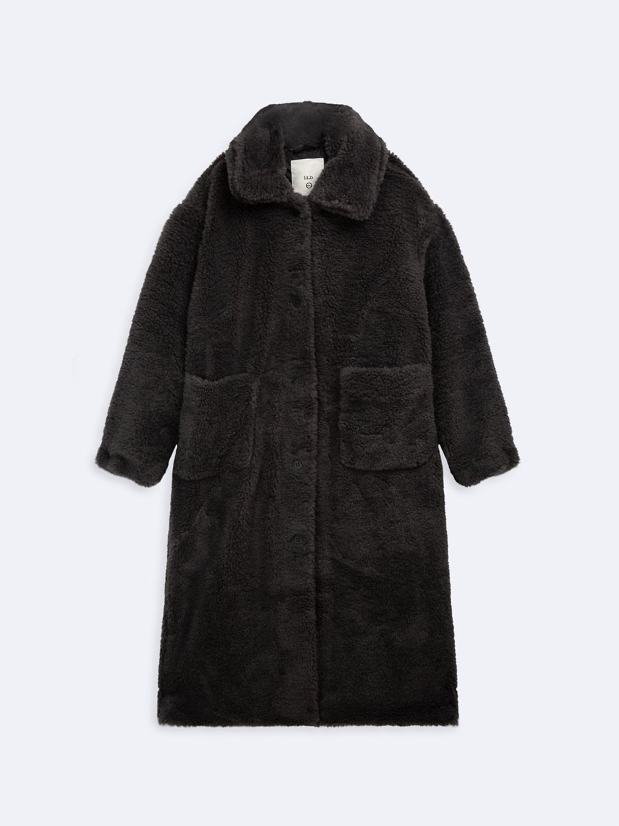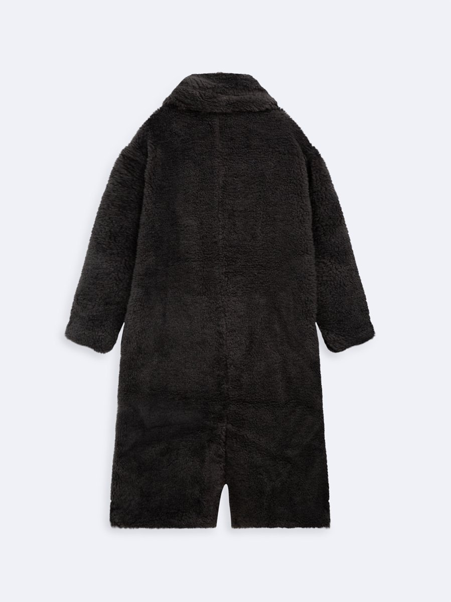 Oversized Front Buttoned Plush Anthracıte Coat