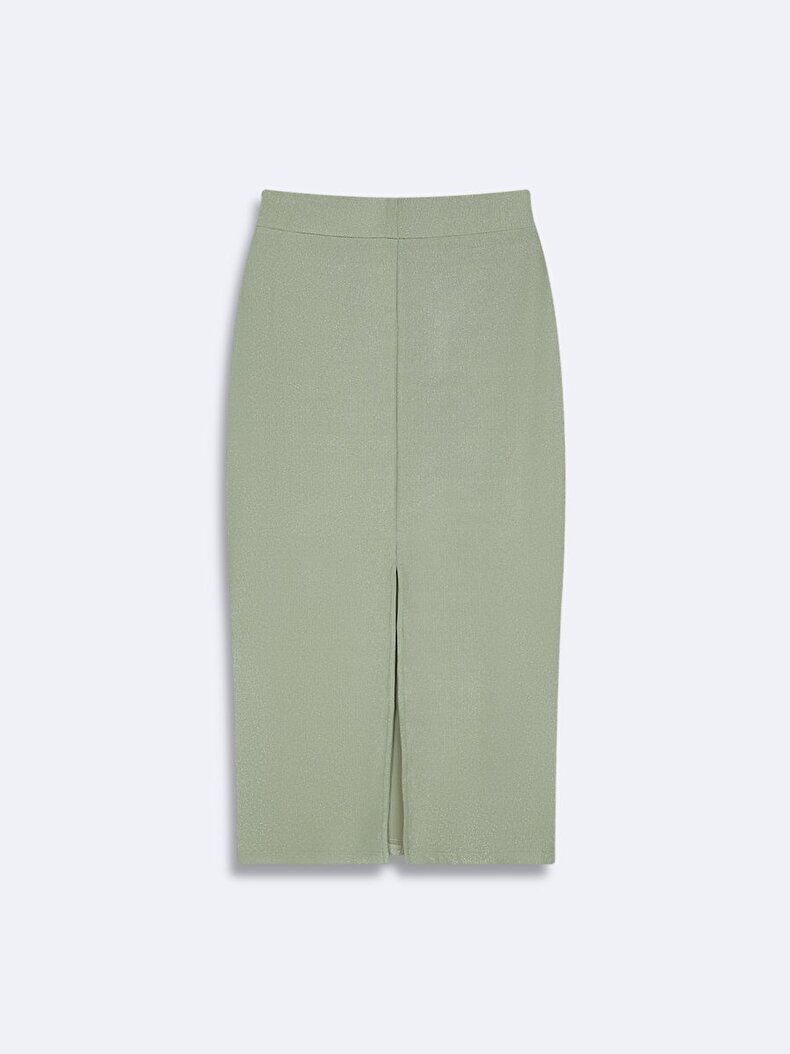 Pencil Cut High Waist Midi Green Skırt