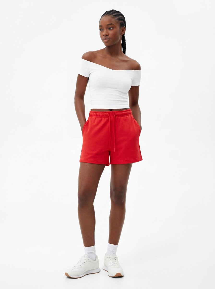 Rahat Kesim Kısa Esnek Örme Kırmızı Şort