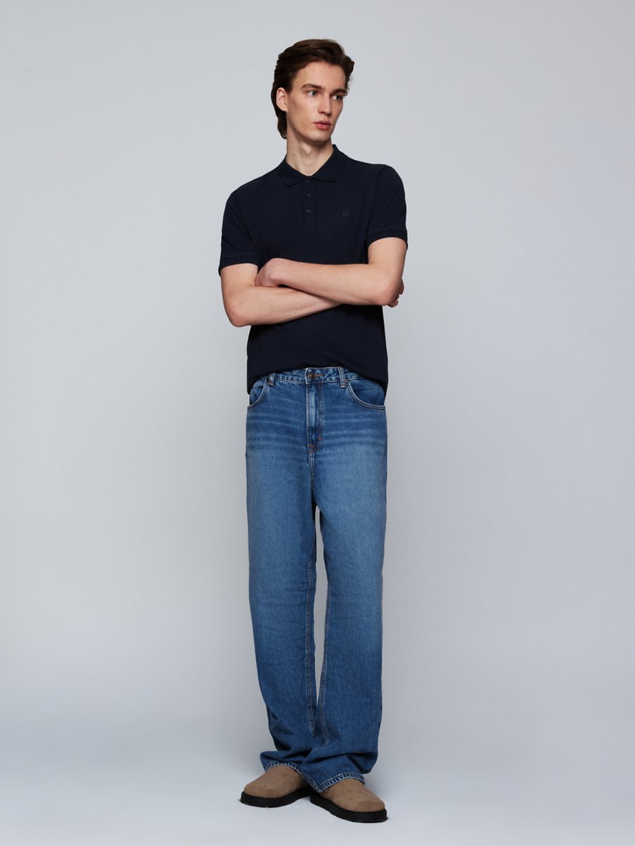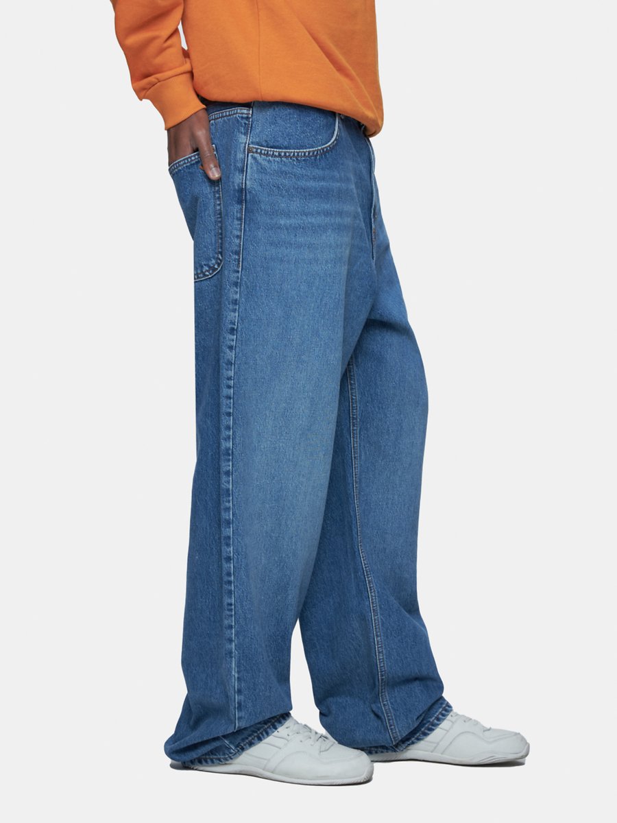 Rubın Geniş Paça Orta Bel Mid Indigo Jean Pantolon