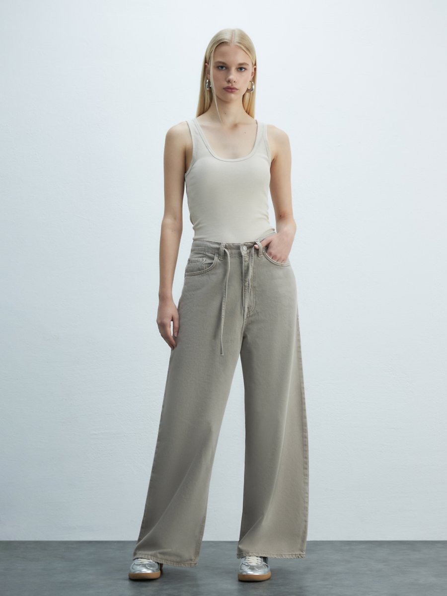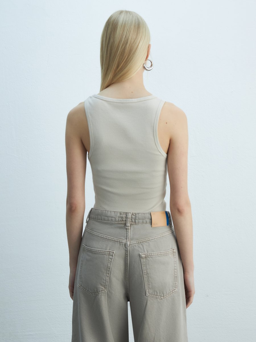 Kısa Kollu U Yaka Basic Bej Atlet