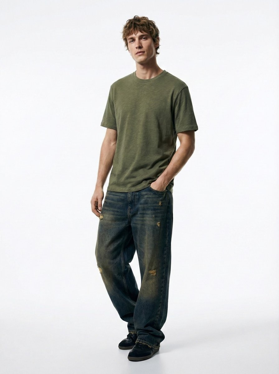 Kısa Kollu Sıfır Yaka Basic Yeşil T-shırt