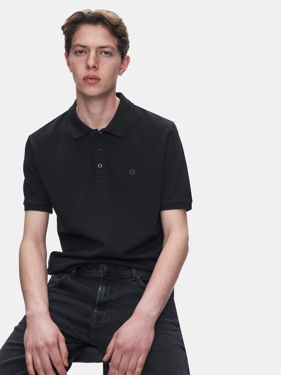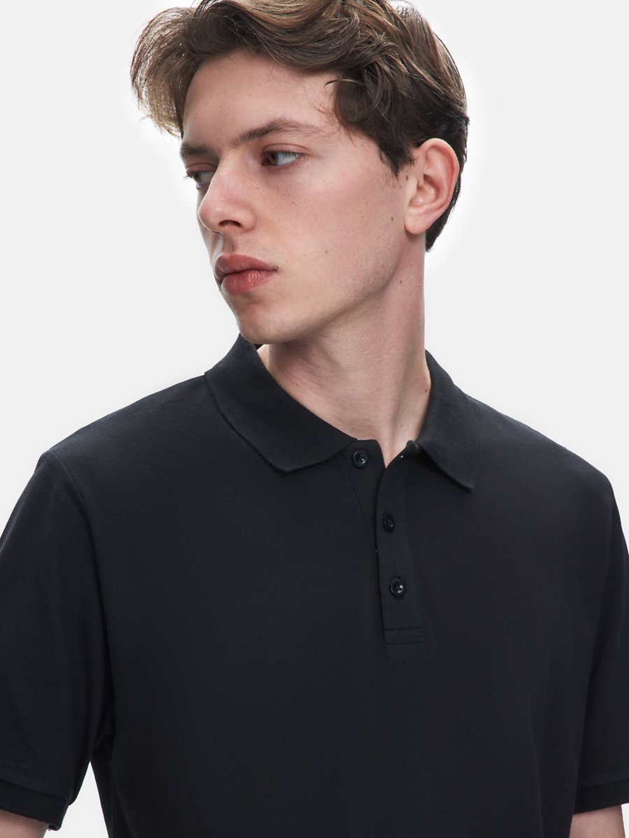 Kısa Kollu Polo Yaka Regular Siyah T-shırt