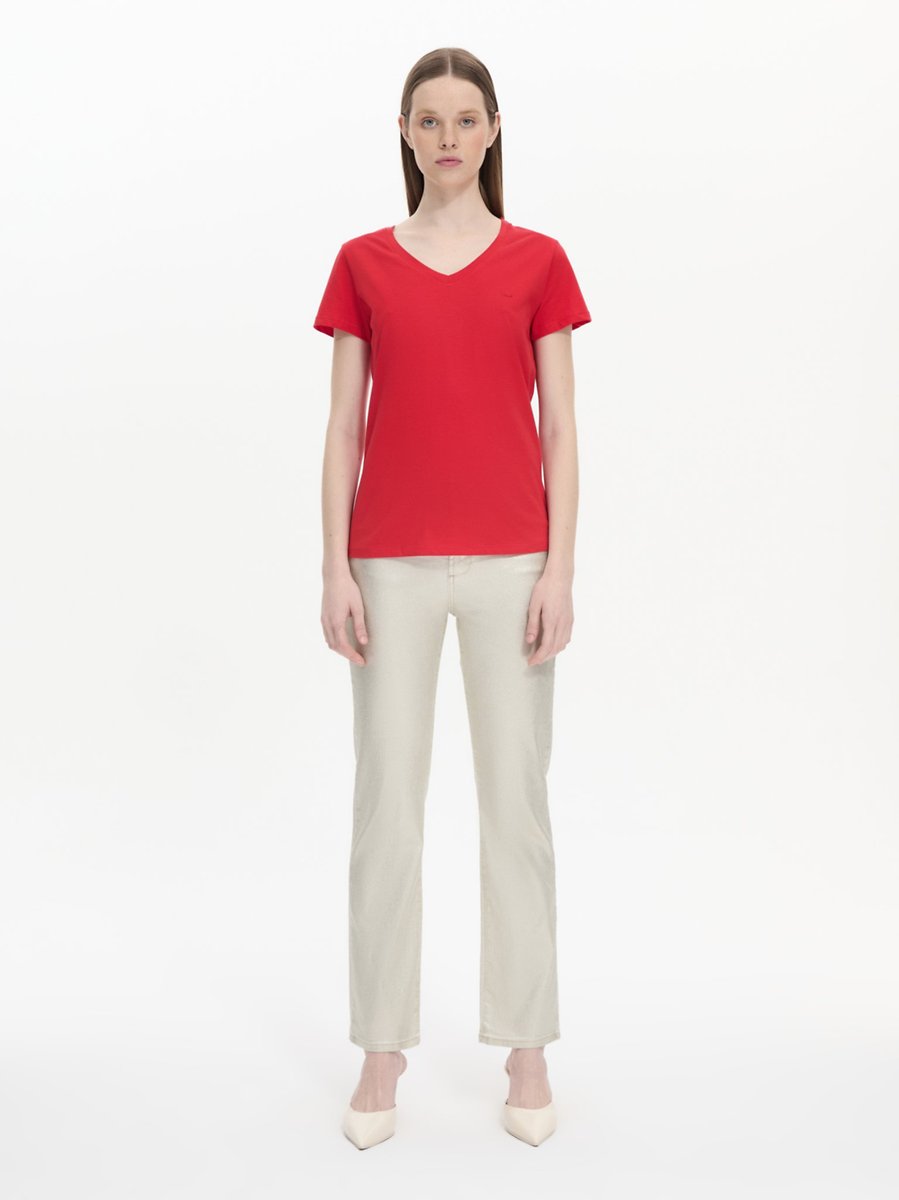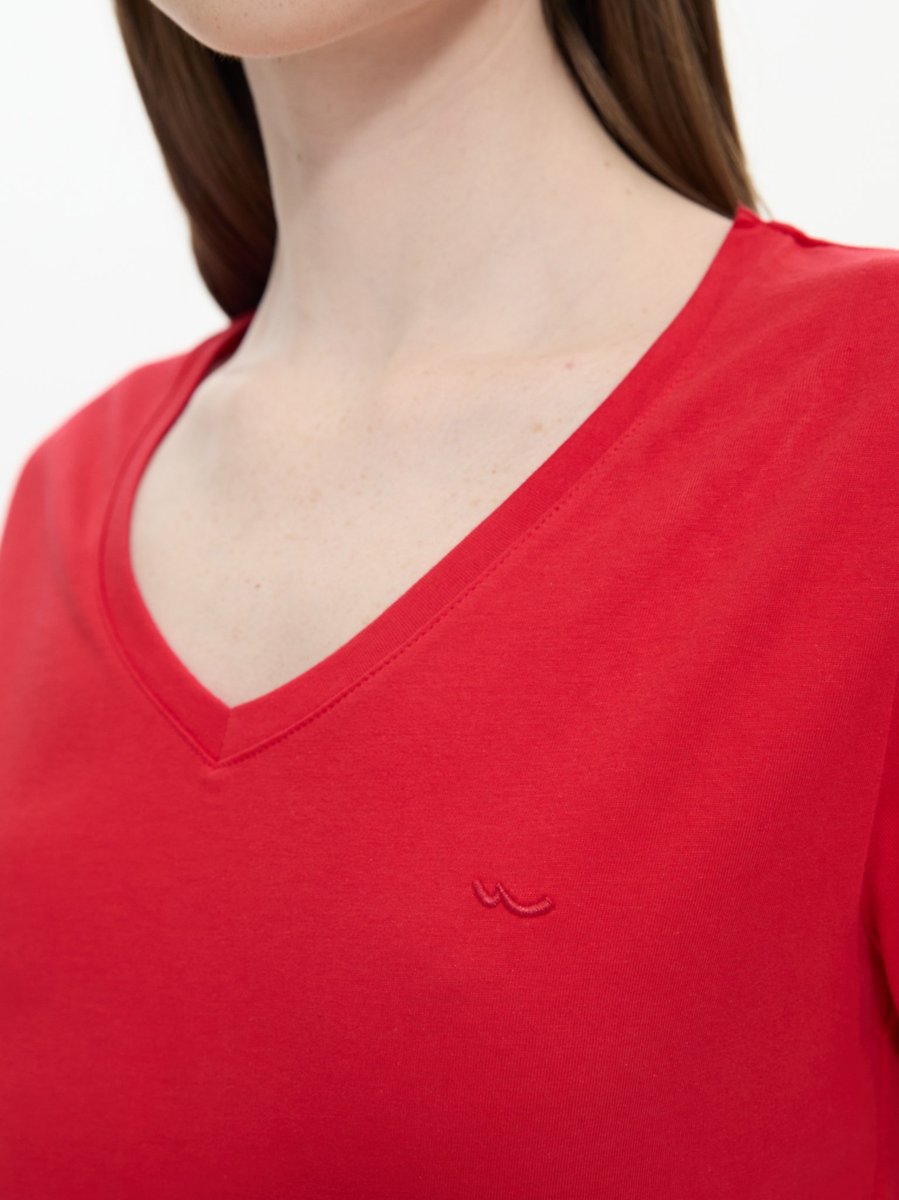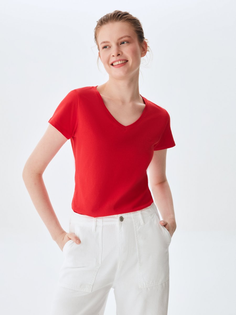 Kısa Kollu V Yaka Basic Kırmızı T-shırt