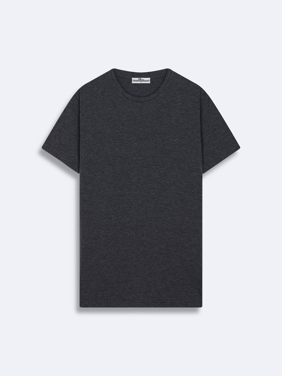 Sıfır Yaka Likralı Antrasit T-shırt
