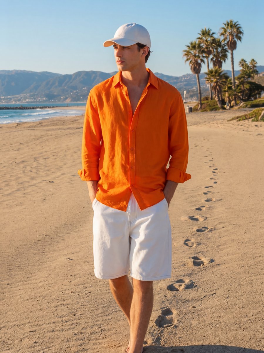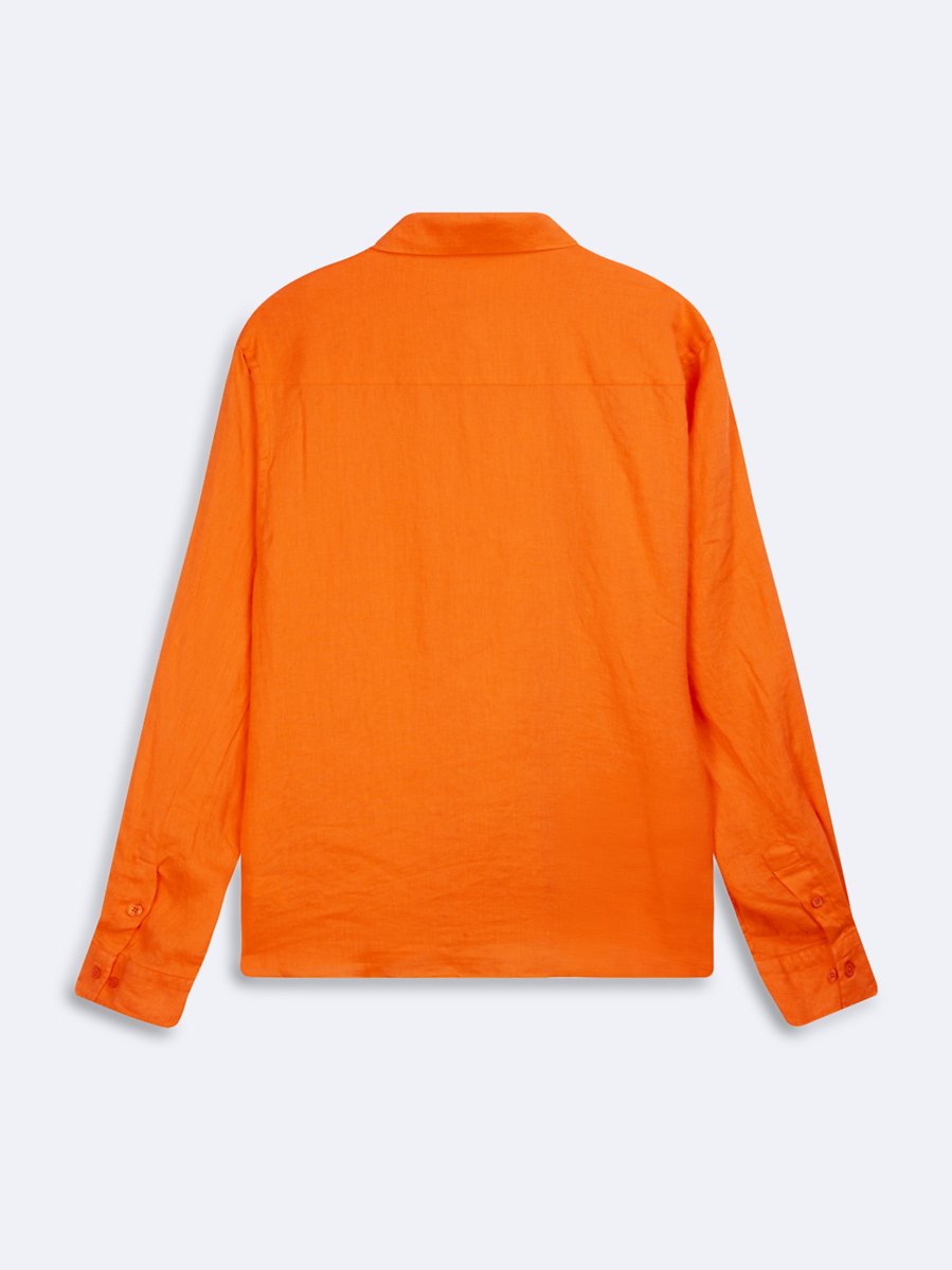 Uzun Kollu Basic Keten Turuncu Gömlek