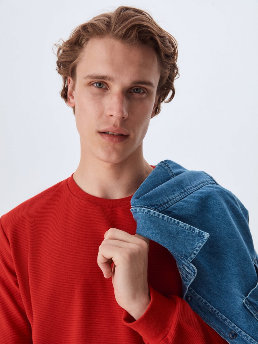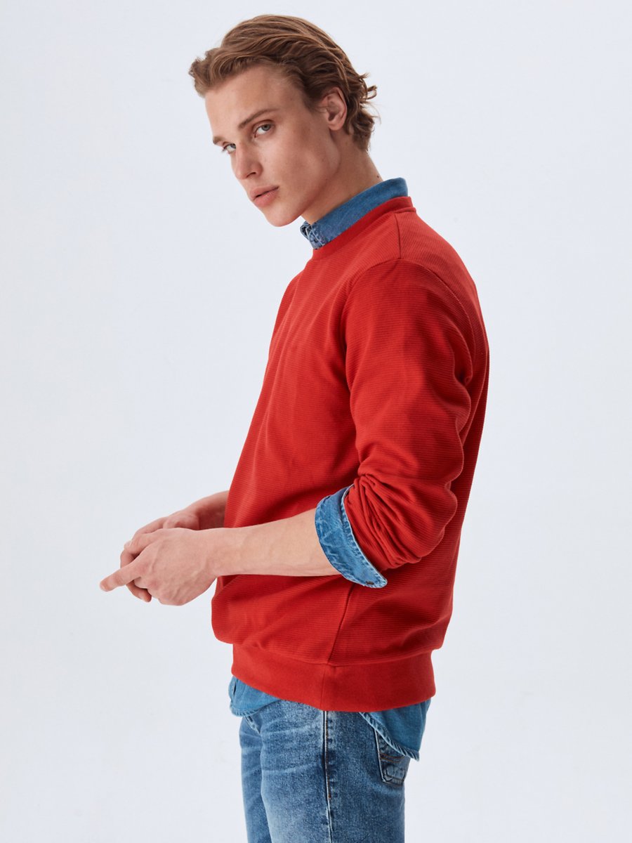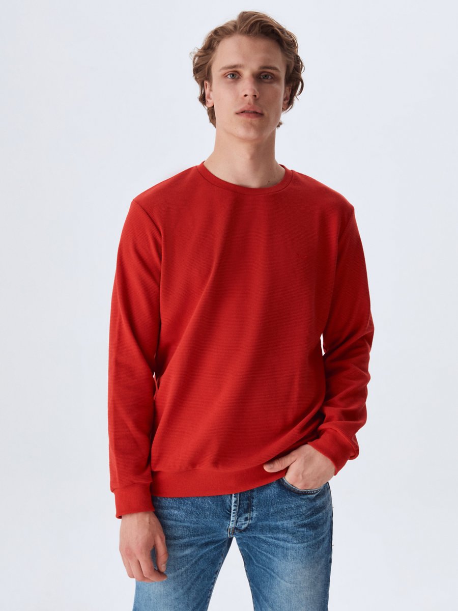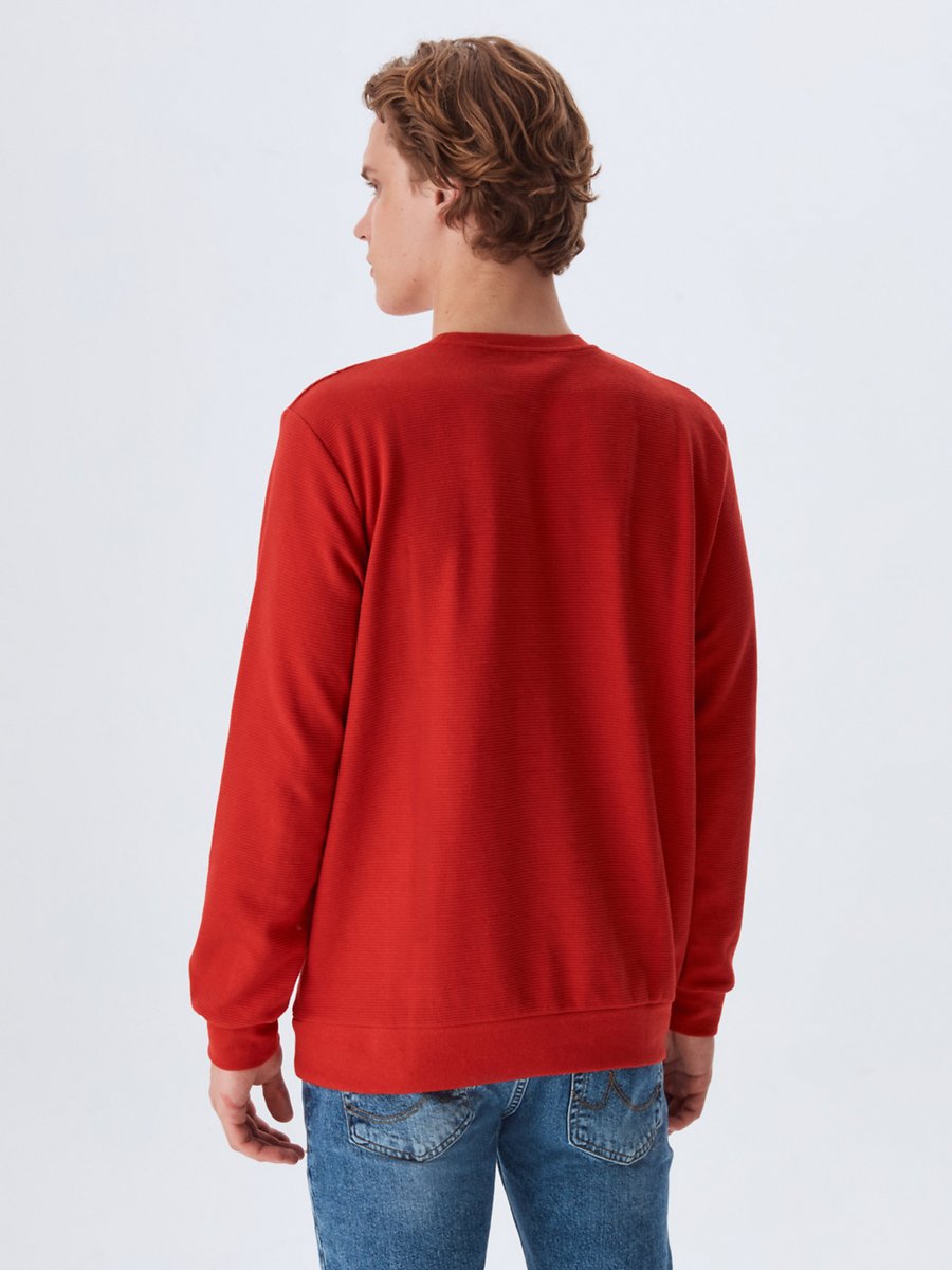 Uzun Kollu Bisiklet Yaka Basic Kırmızı Sweatshırt