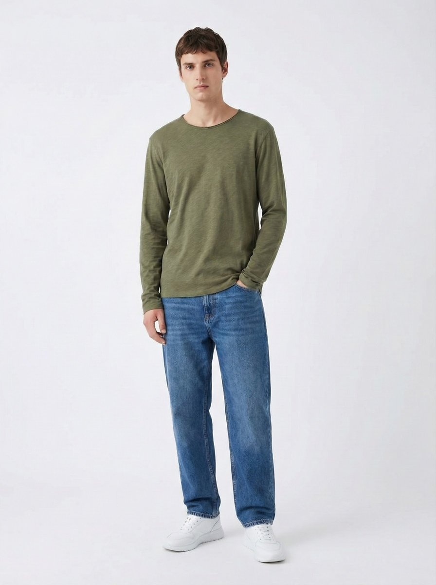Long Sleeves Crew Neck Basic Green Sweatshırt