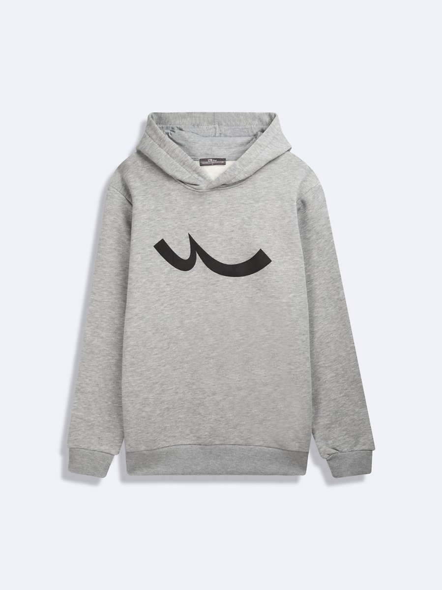 Uzun Kollu Kapüşonlu Sign Baskılı Gri Sweatshırt