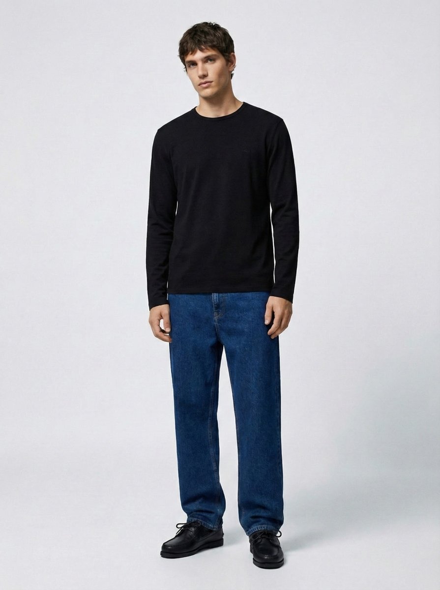 Uzun Kollu Sıfır Yaka Basic Siyah Sweatshırt